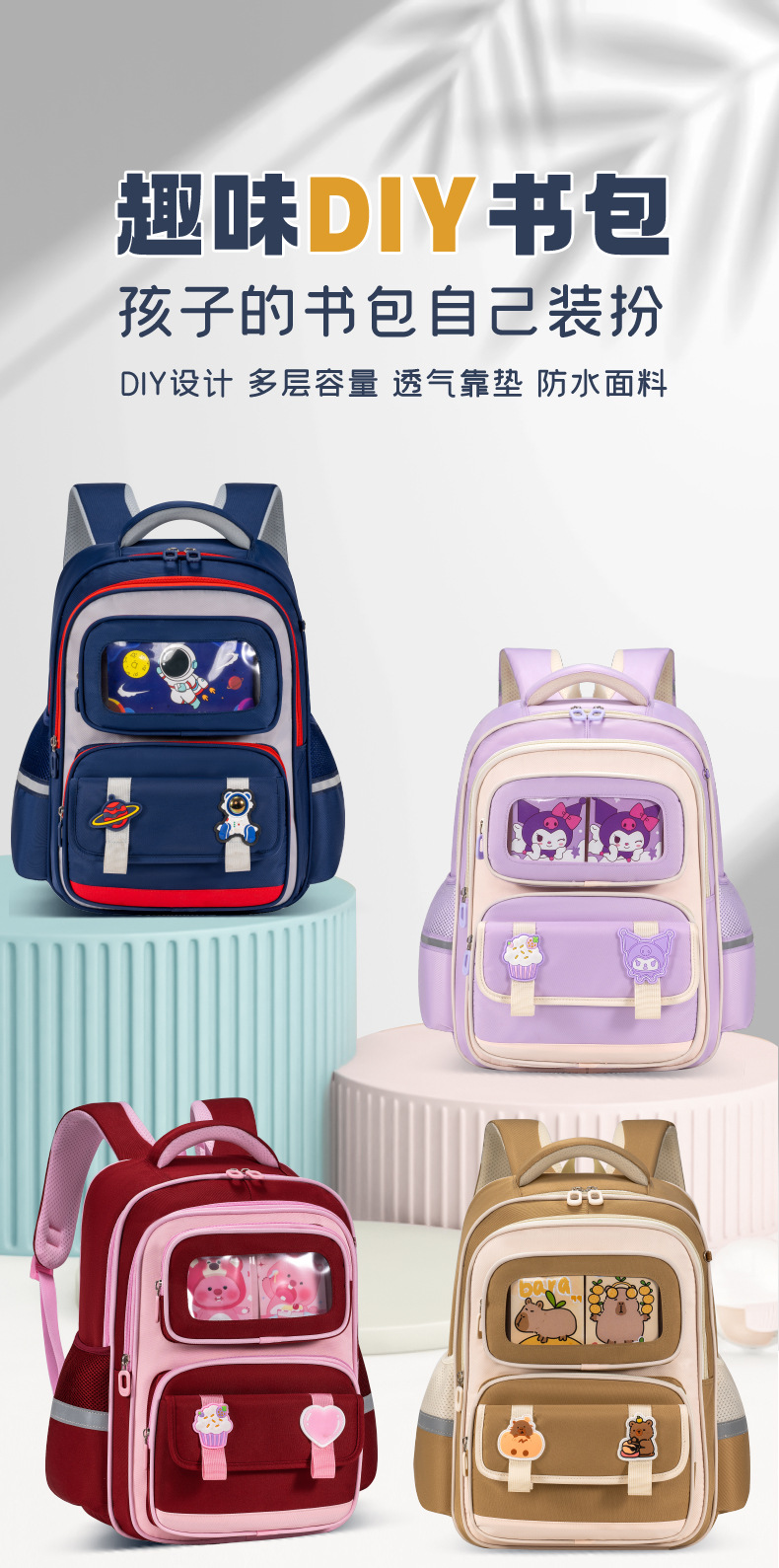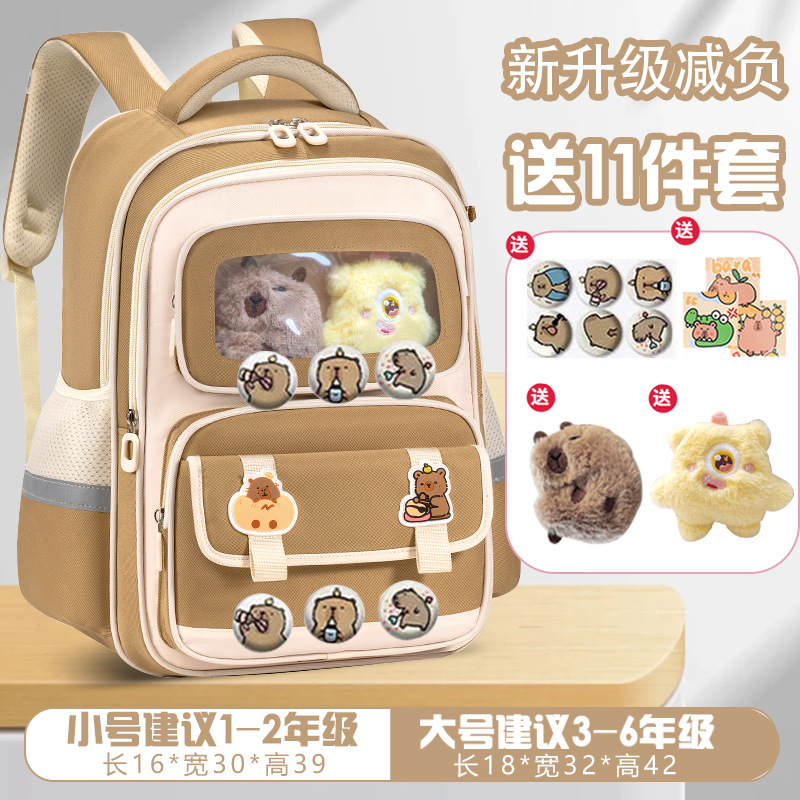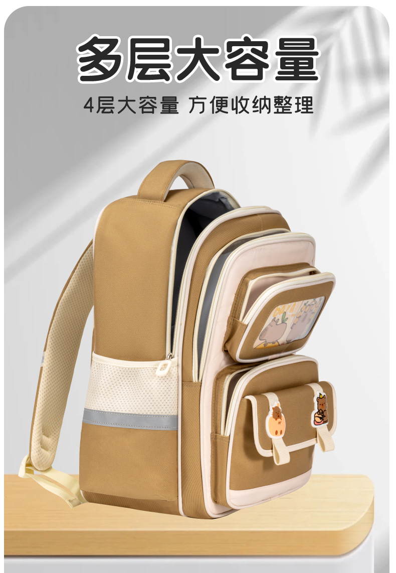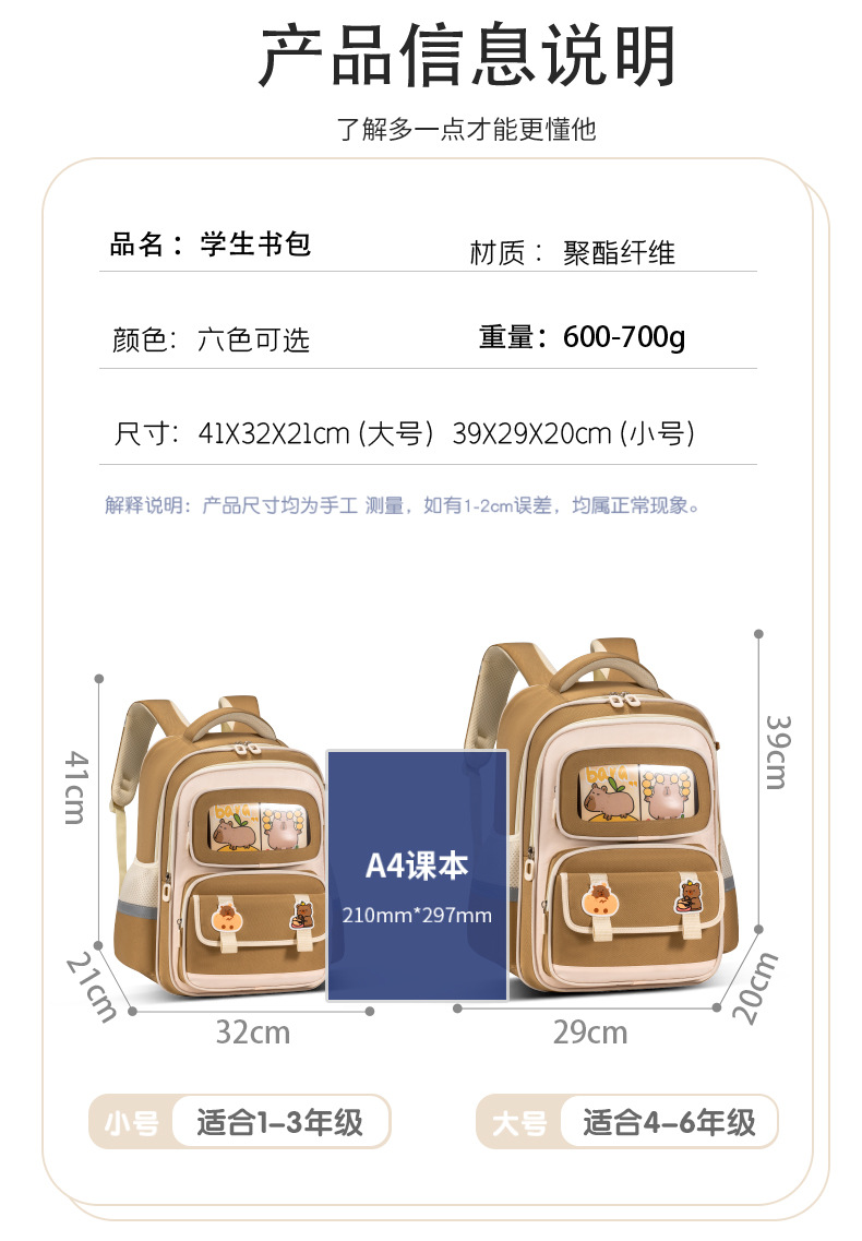 초등학생을위한 새로운 Coolomi 어린이 학교 가방 1-3-6 학년 Capibala 대용량 부담 감소 배낭