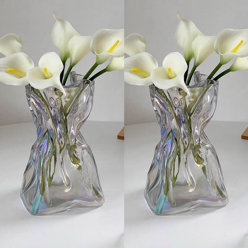 고급 단순하고 창의적인 불규칙한 B&B 꽃병 투명 유리 거실 데스크탑 꽃꽂이 물 장식 장식품