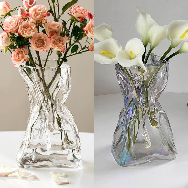 고급 단순하고 창의적인 불규칙한 B&B 꽃병 투명 유리 거실 데스크탑 꽃꽂이 물 장식 장식품스토어 가기