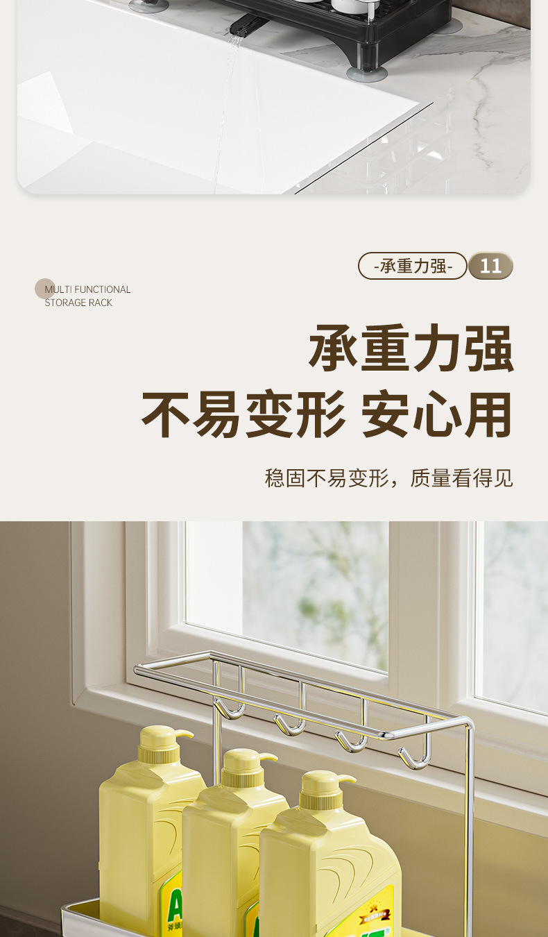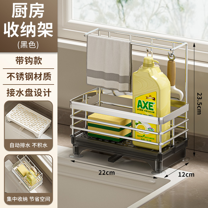 • 업그레이드 모델 - 후크 4개 포함 [싱크대 수납선반] 블랙