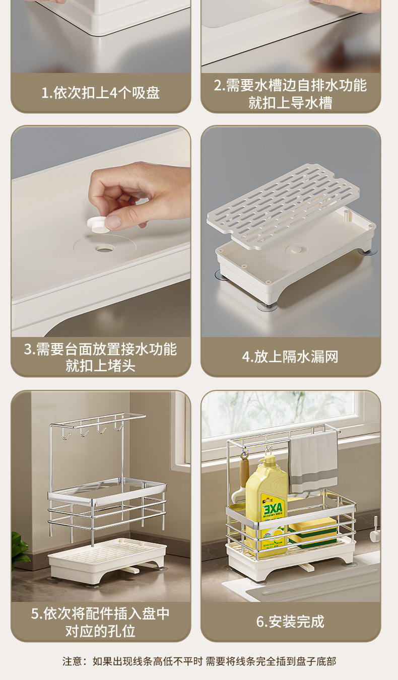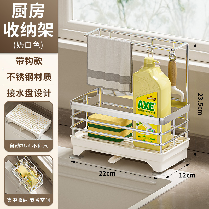 • 업그레이드 모델 - 후크 4개 포함 [싱크대 수납선반] 밀크화이트