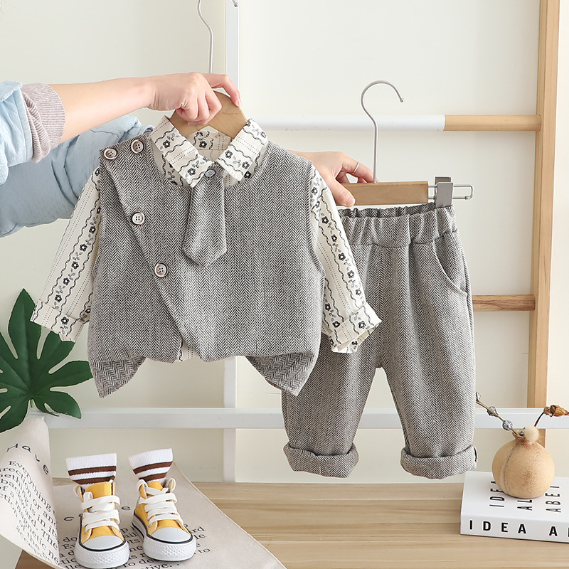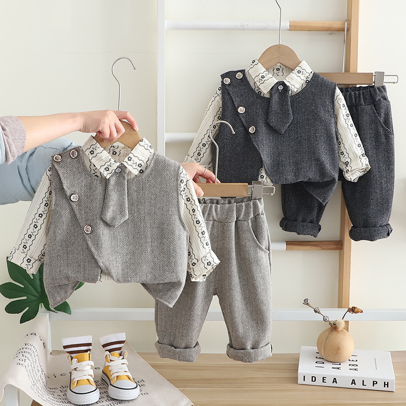 2025 새로운 가을 소년 넥타이 셔츠 조끼 긴 소매 3 피스 세트 아기 소년 캐주얼 바지 정장 dropshipping스토어 가기