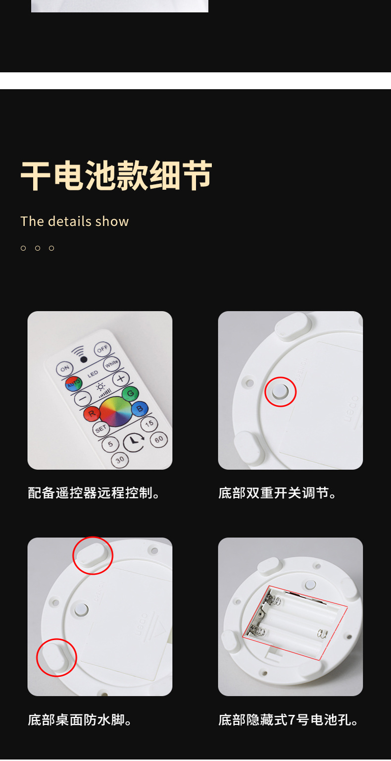 • D10xH15cm/배터리 유형/따뜻한 조명 + 컬러 조명 리모콘