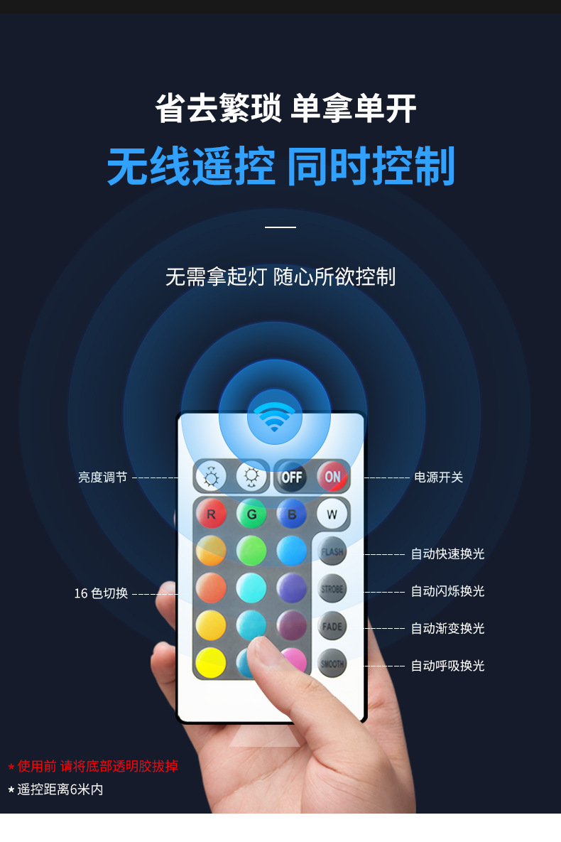 • 광원 베이스/충전식 모델/16색 조명 리모콘