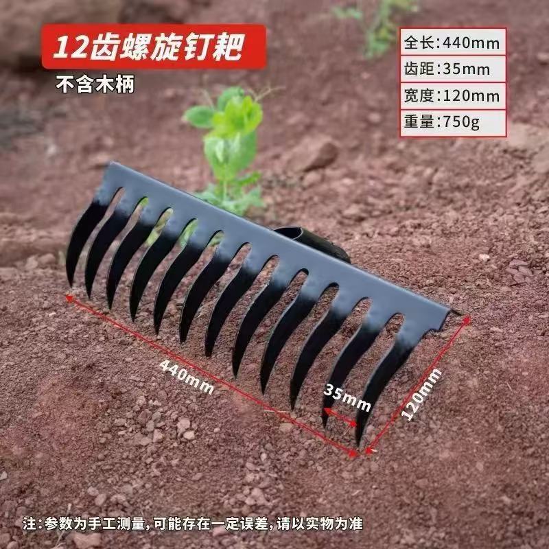 새로운 망간강 나선형 갈퀴, 망간강 용접 농업용 다기능 나무 손잡이 원예 갈퀴, 담금질 단조 수제스토어 가기