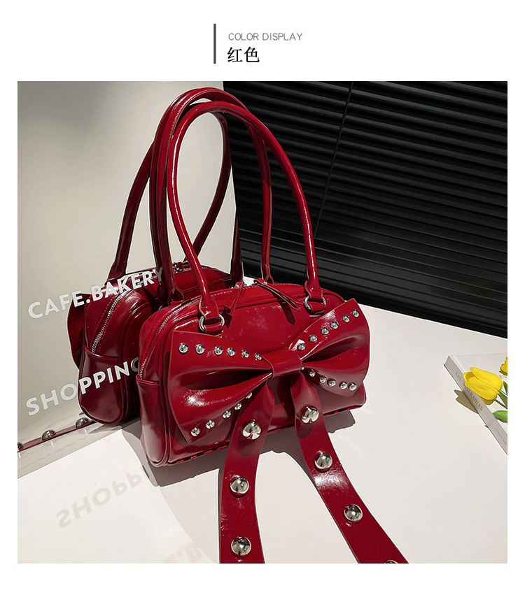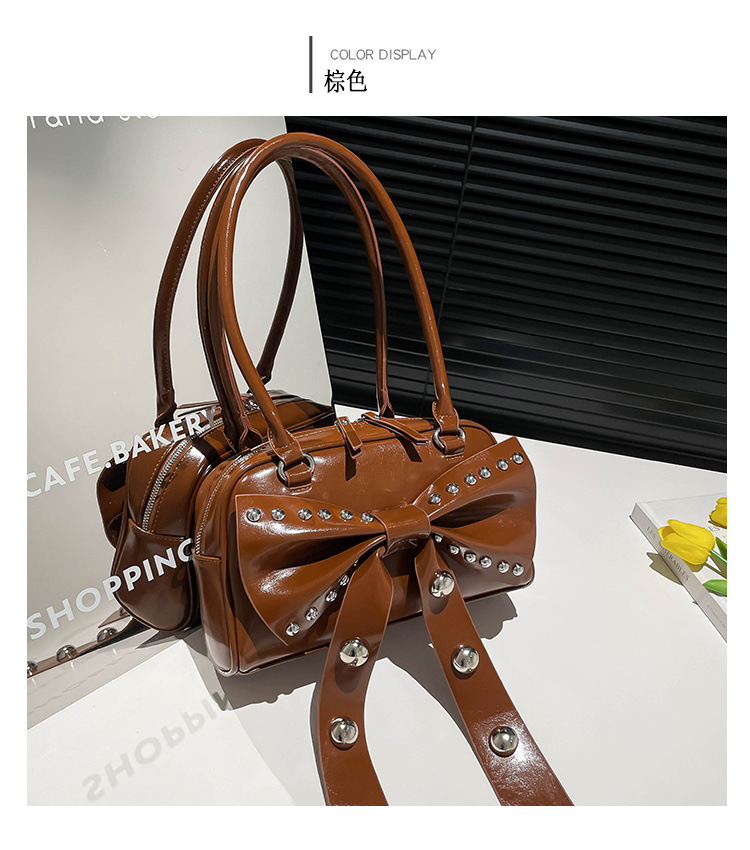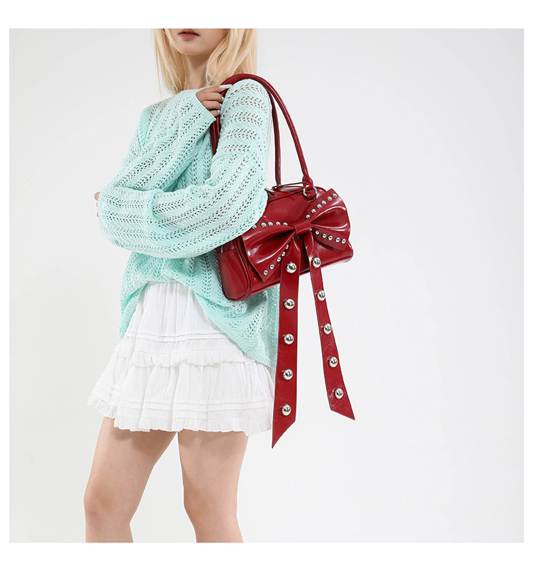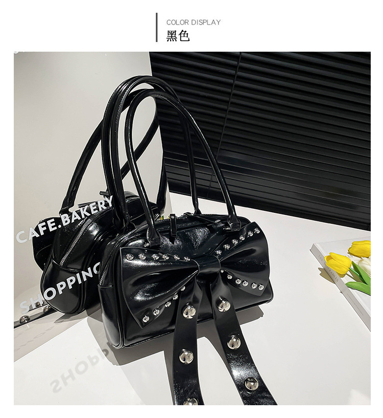 리벳 오토바이 핫 소녀 가방 여성 2025 크로스 보더 뉴 보우 보스턴 유럽과 미국 패션 다용도 숄더백