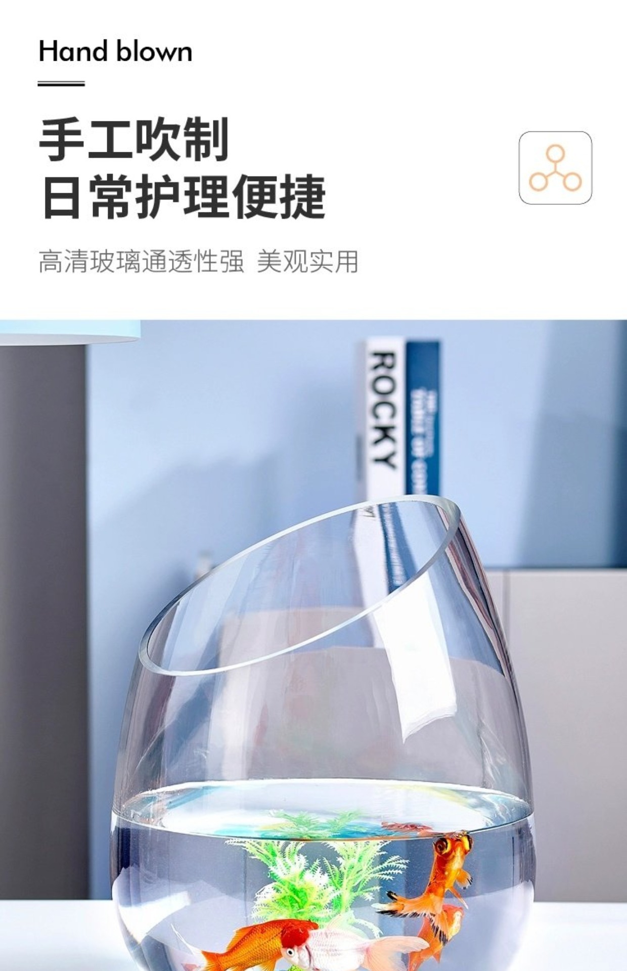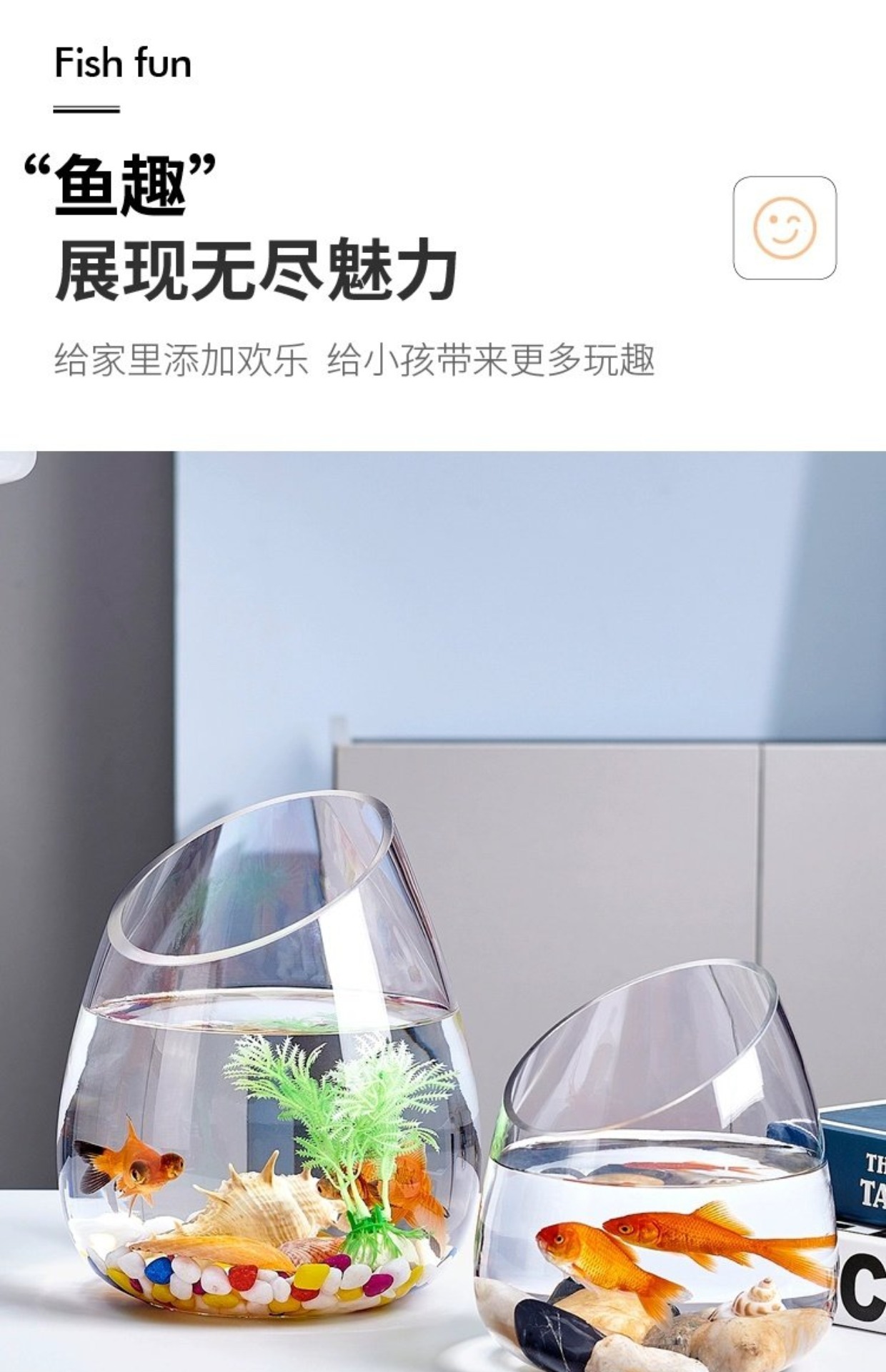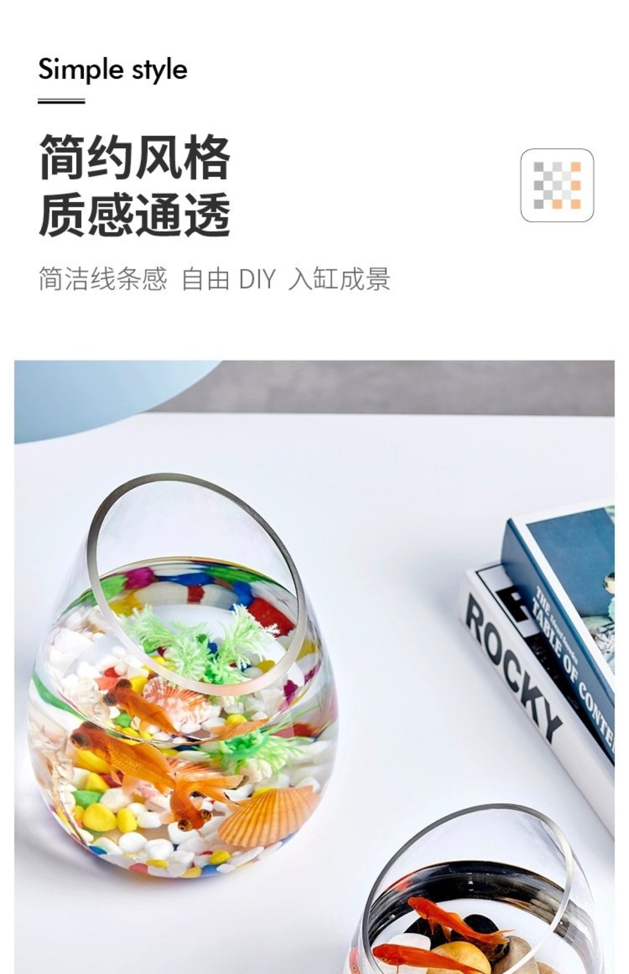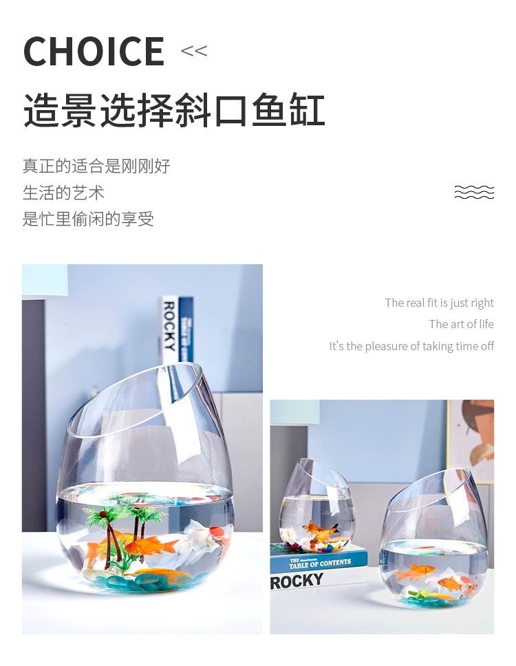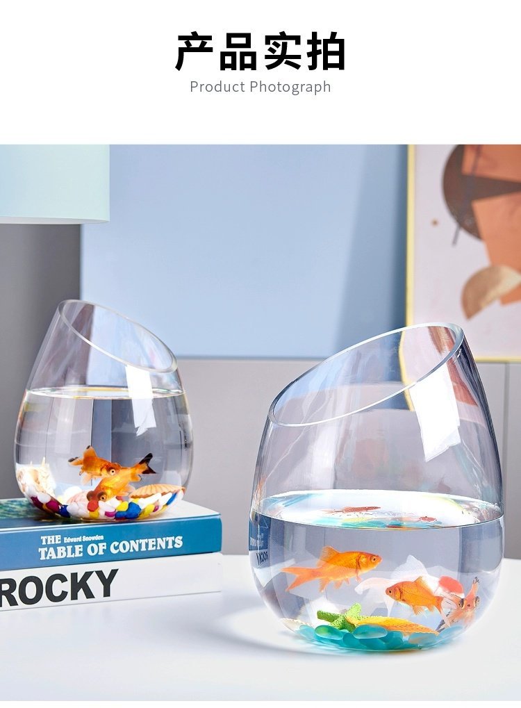 사무실 작은 어항 두꺼운 투명 유리 거북이 탱크 거실 홈 데스크탑 둥근 경사 입 작은 금붕어 탱크스토어 가기