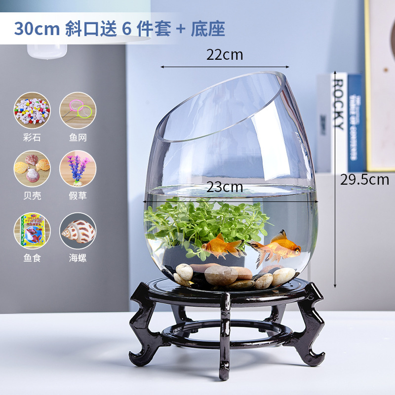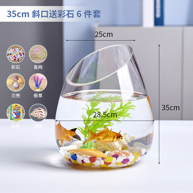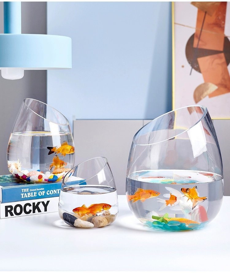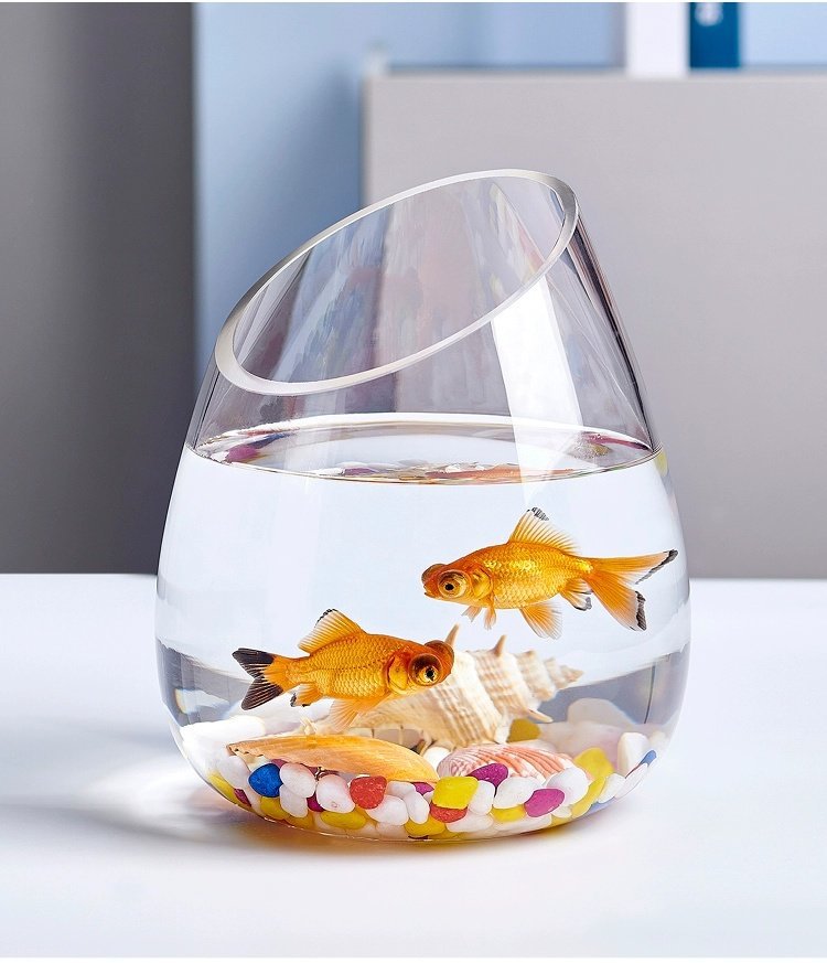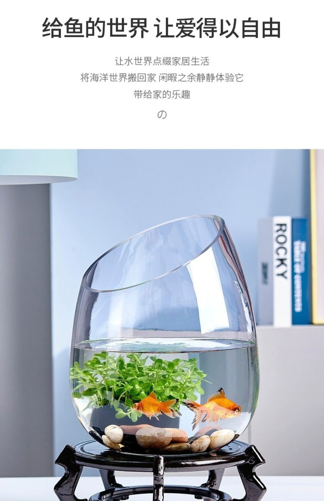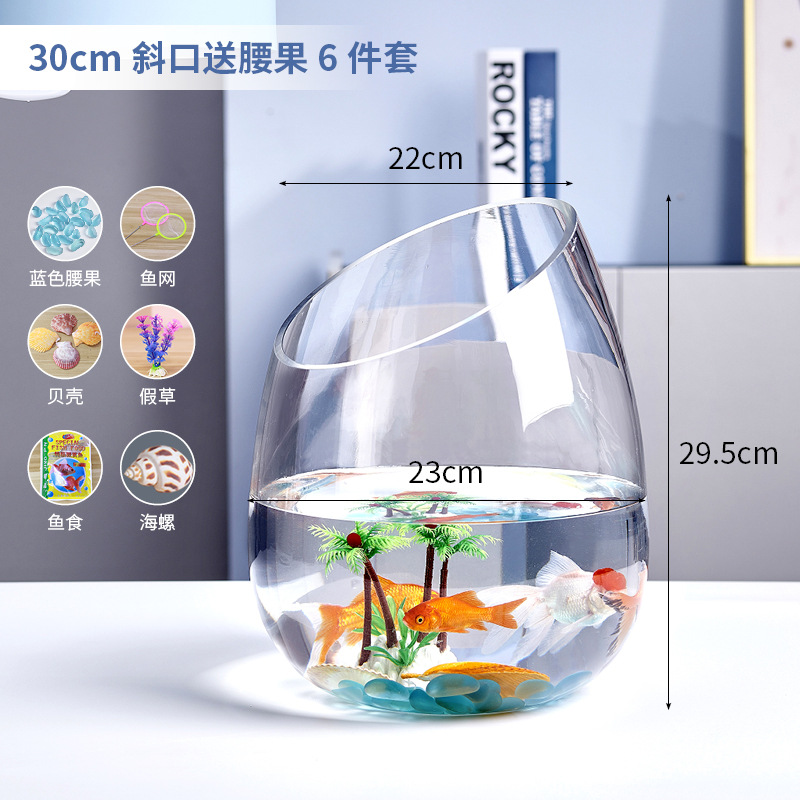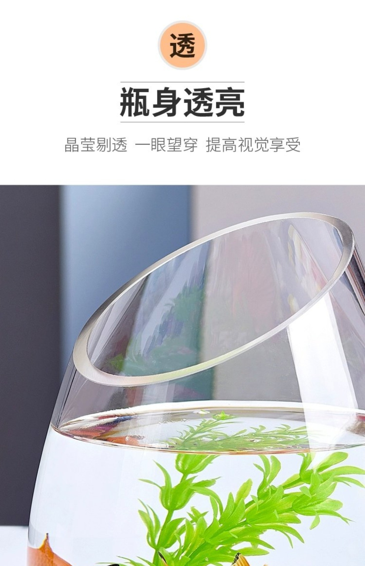 사무실 작은 어항 두꺼운 투명 유리 거북이 탱크 거실 홈 데스크탑 둥근 경사 입 작은 금붕어 탱크스토어 가기