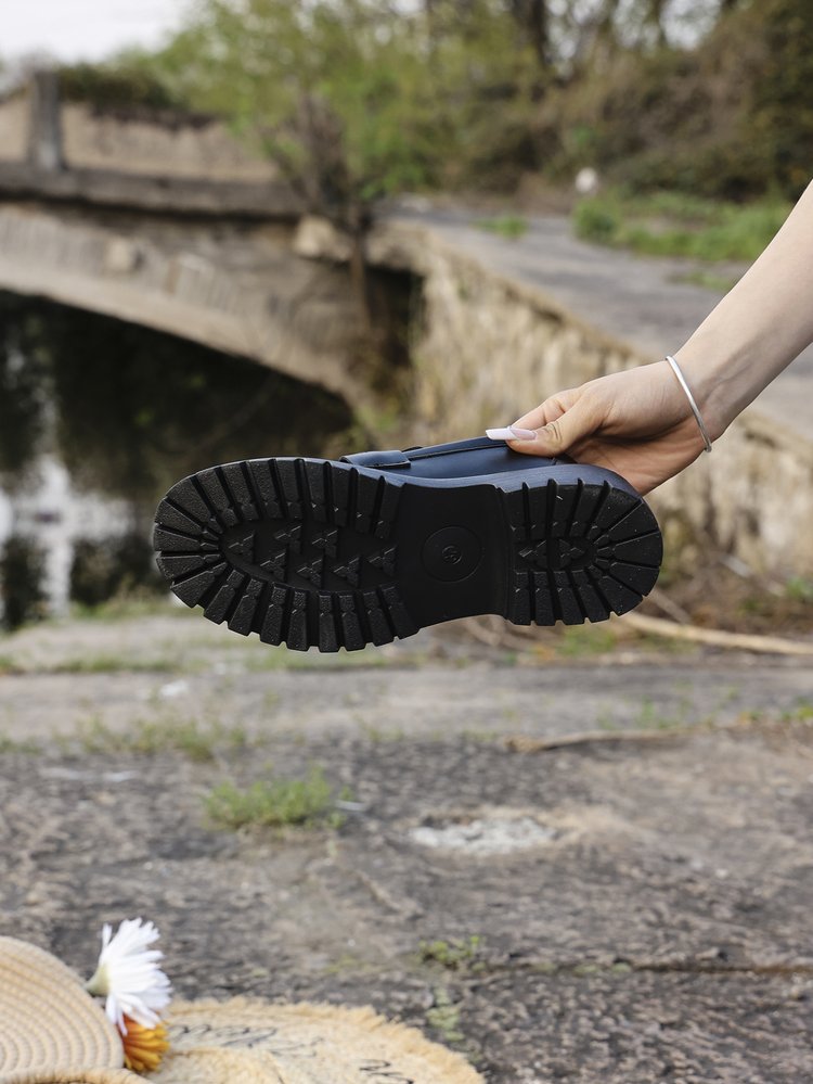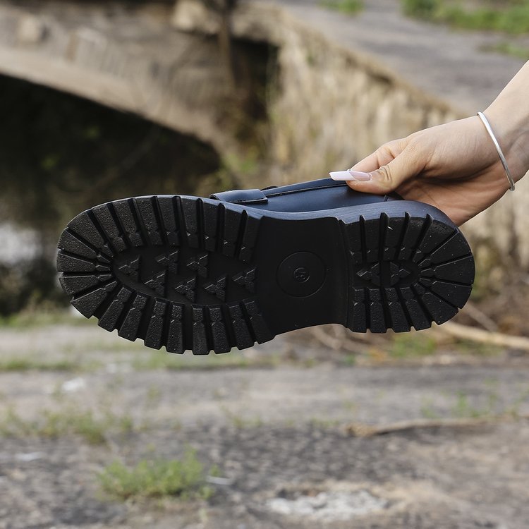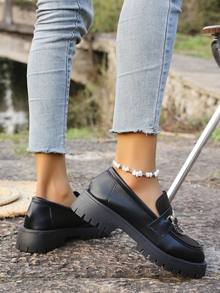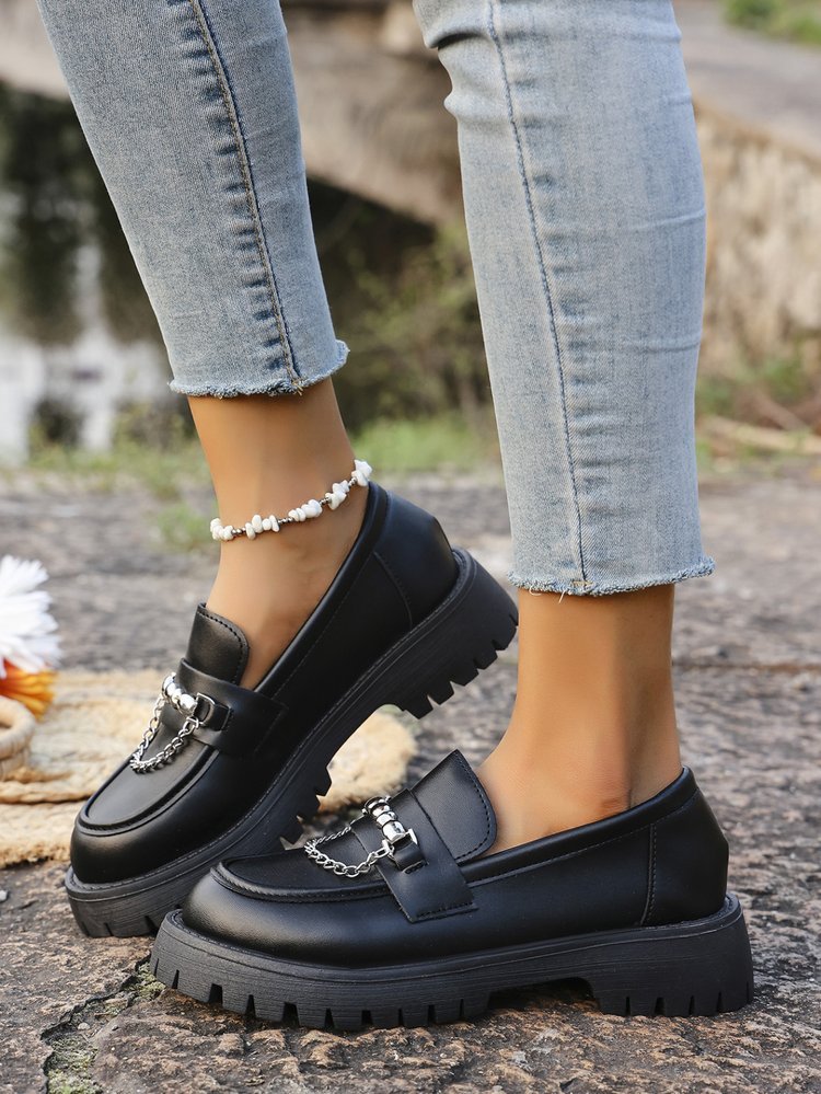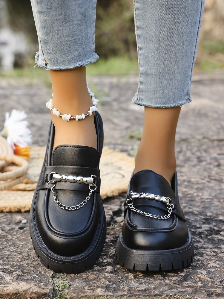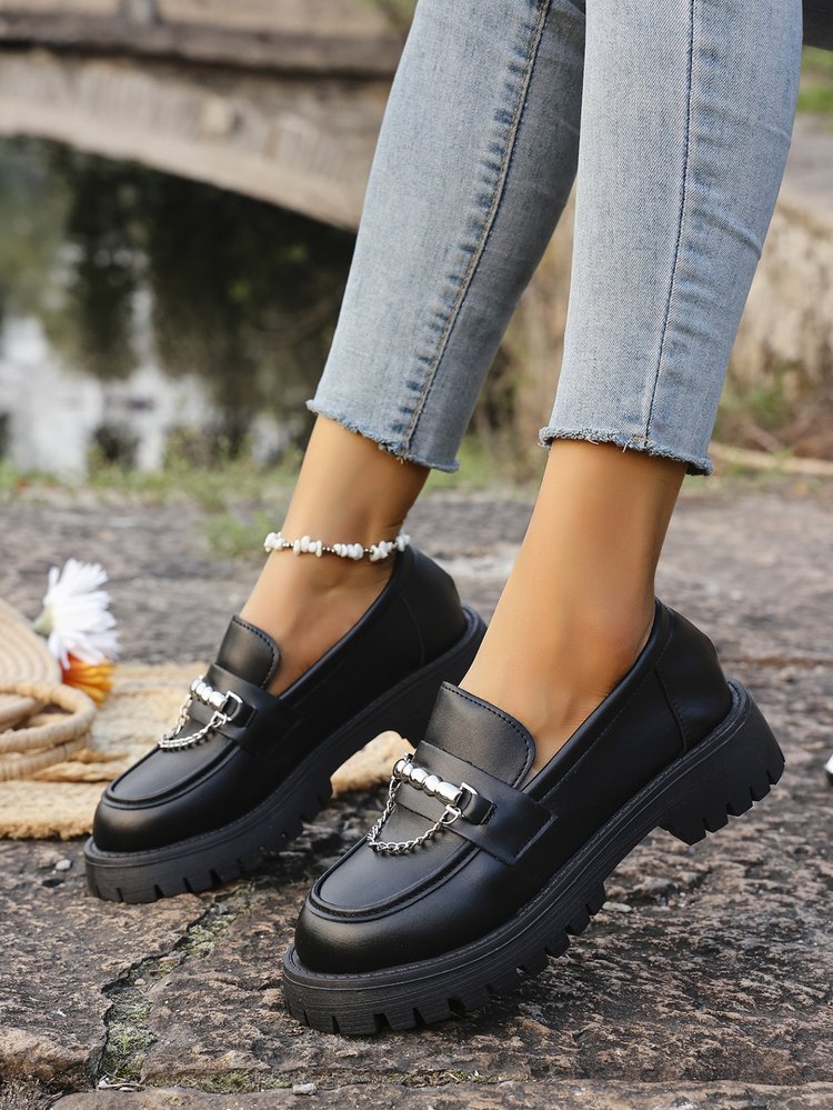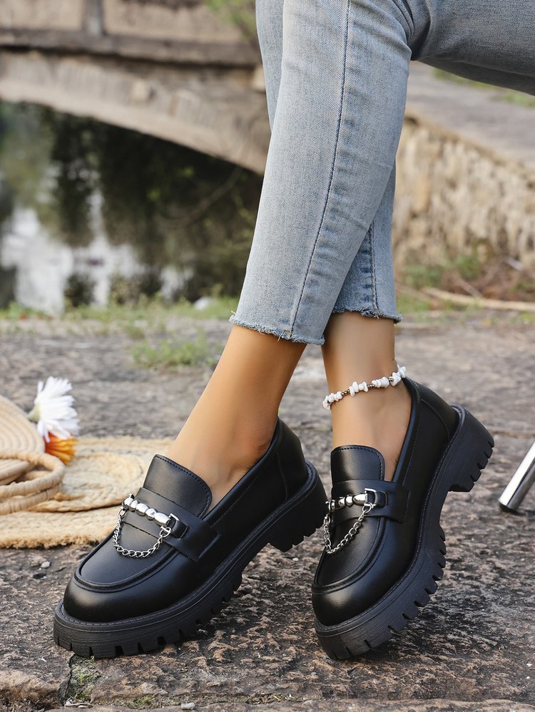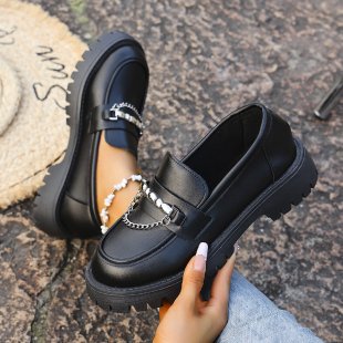 여성을위한 국경 간 검은 로퍼 2025 새로운 대외 무역 두꺼운 밑창 체인 신발 기질 영국 스타일 작은 가죽 신발 도매스토어 가기