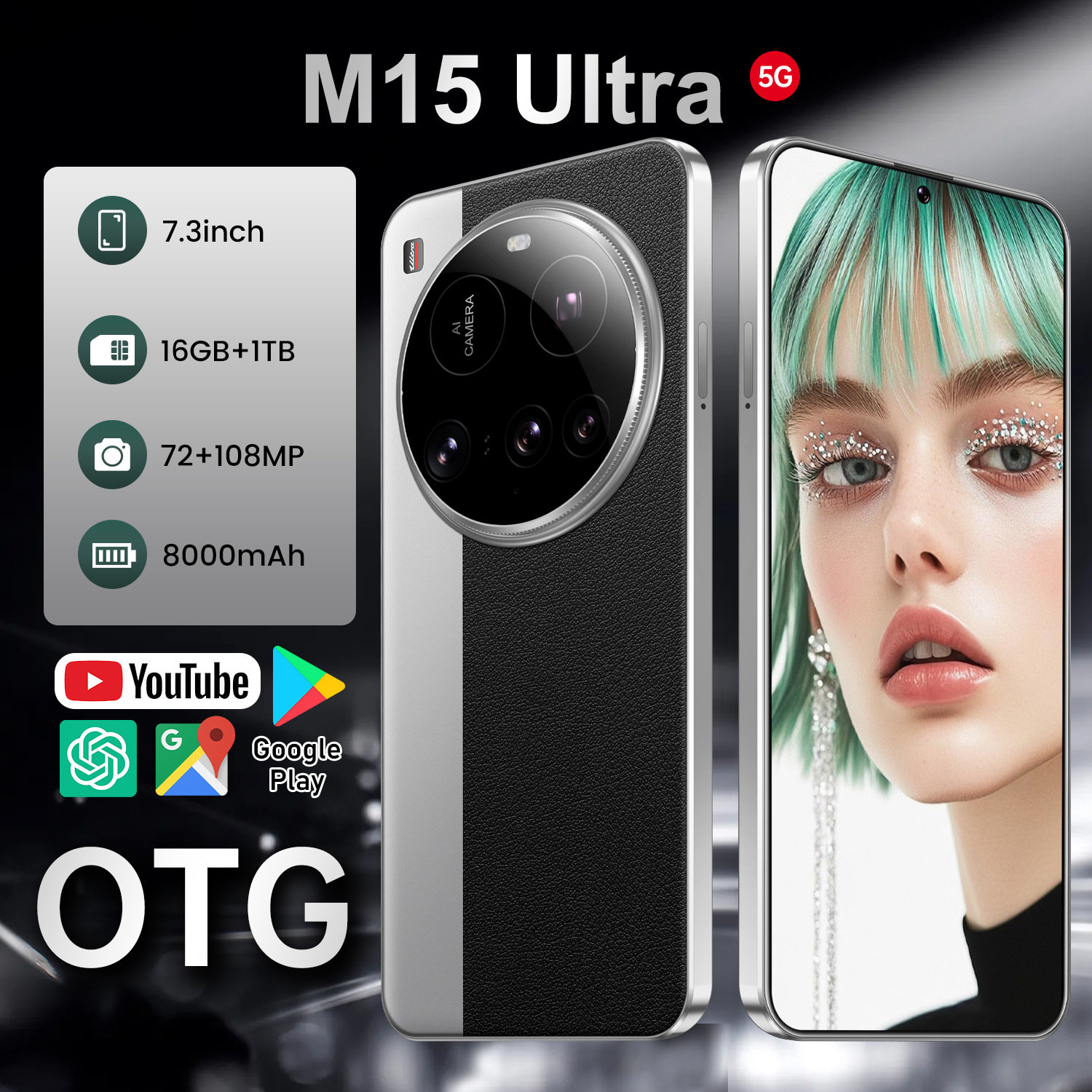 새로운 M15 Ultra Android 7.3inch 천공 대형 스크린 대외 무역 Amazon 베스트셀러 크로스보더 5G 스마트 폰
