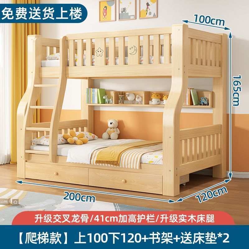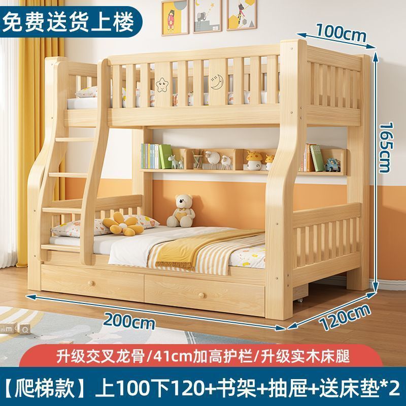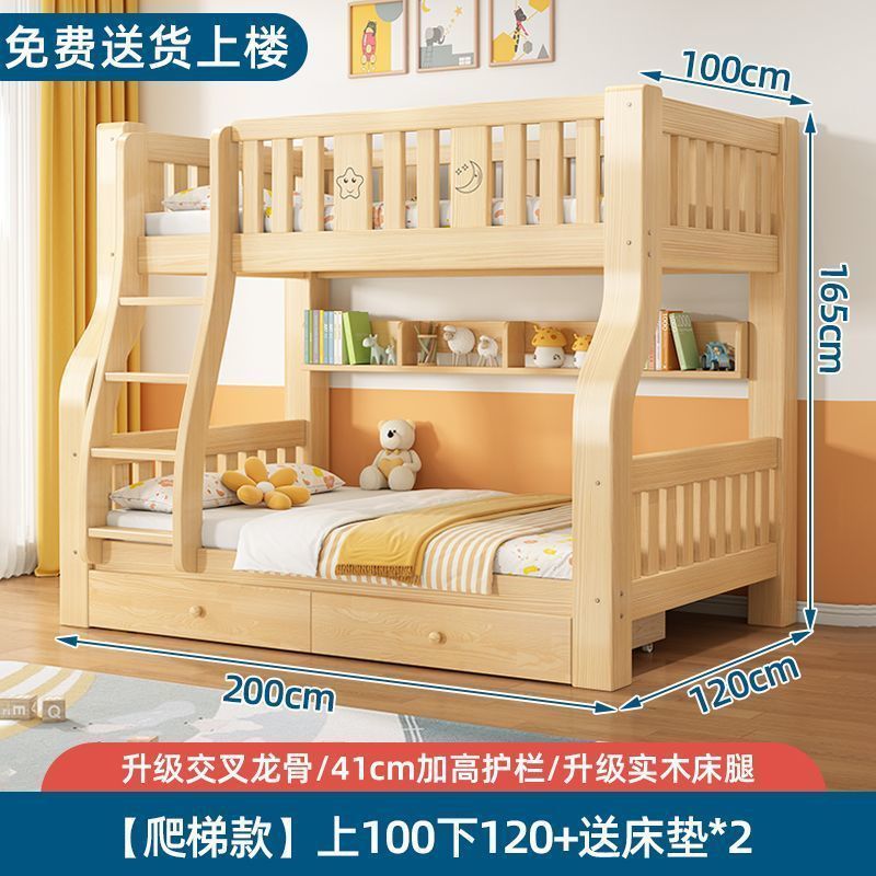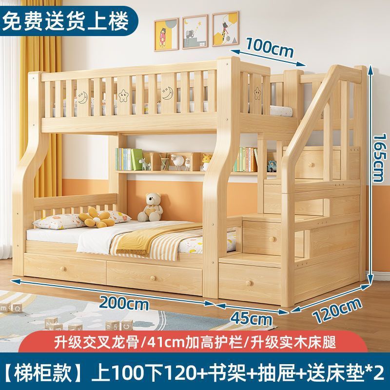 원목 이층침대, 2층 어린이침대, 소형 가정용 2층 다기능 높낮이 침대, 이층침대 Amazon