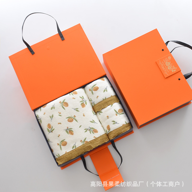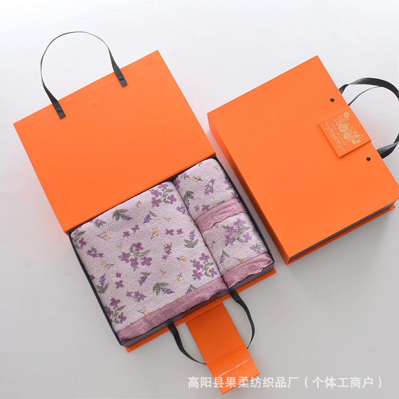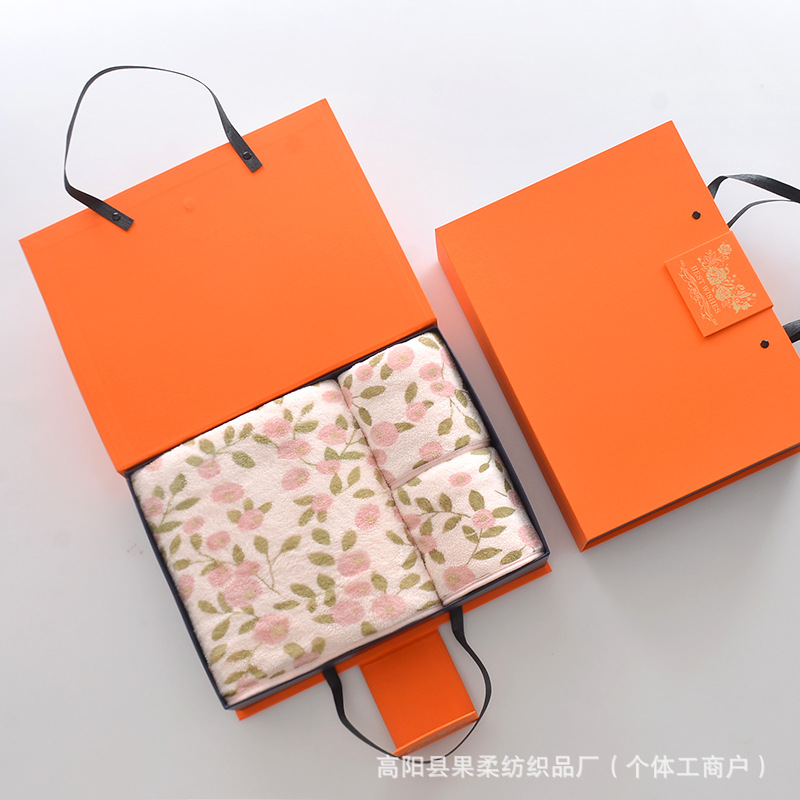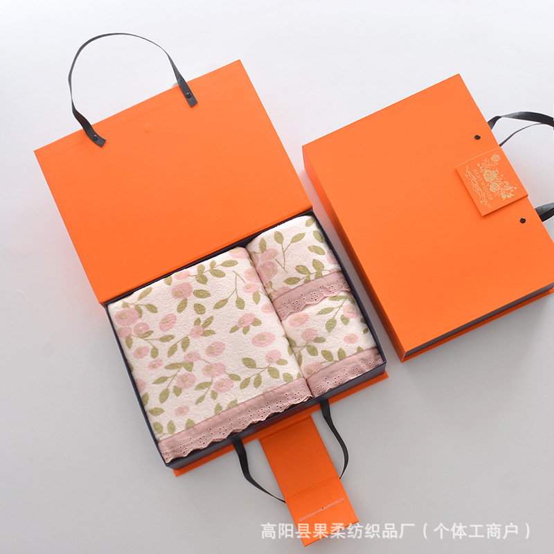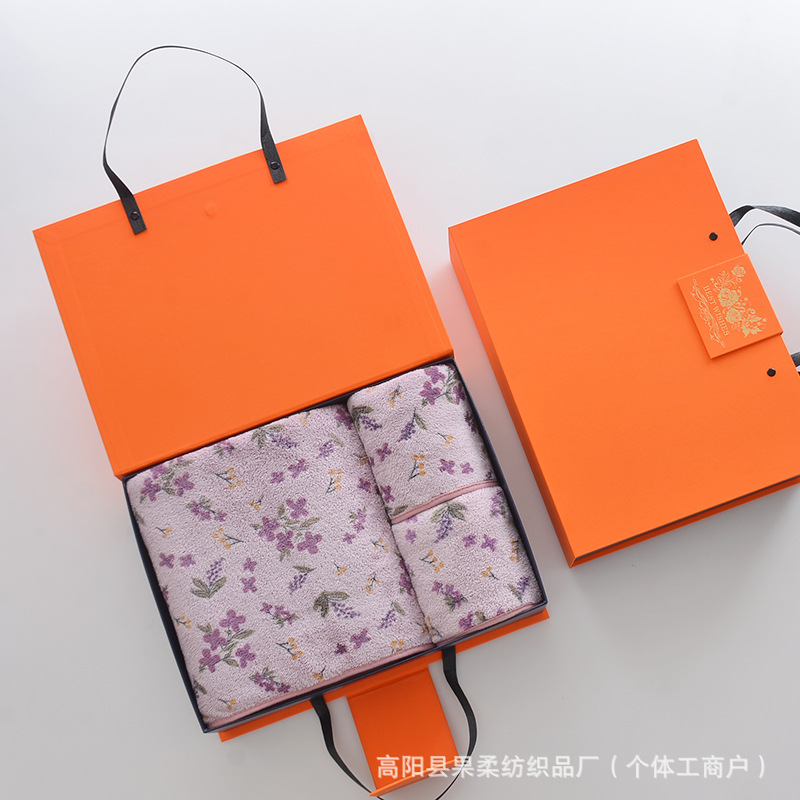 새로운 패션 작은 꽃무늬 목욕 수건 3피스 선물 상자 부드러운 비즈니스 회사 연례 회의 로고로 배치 가능스토어 가기