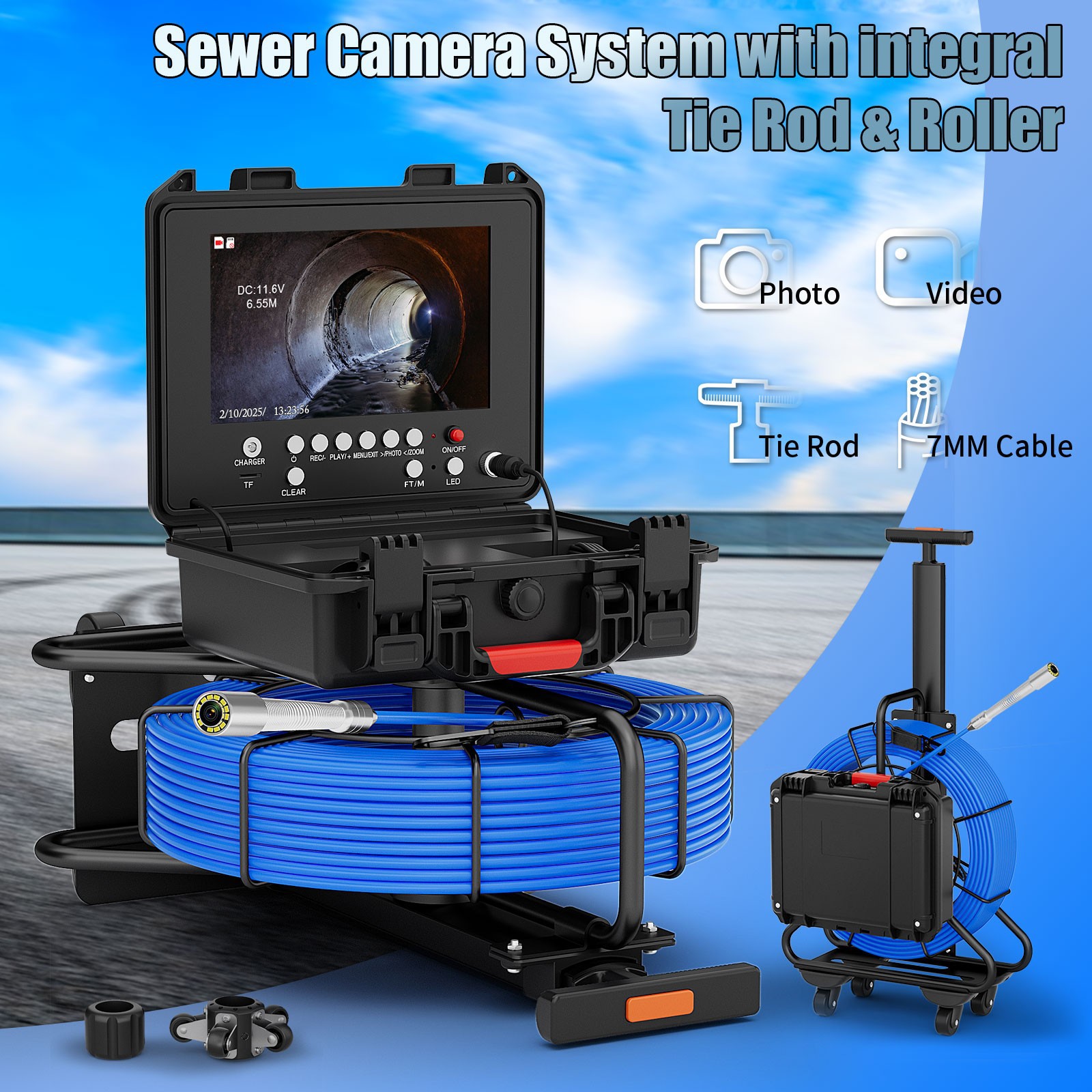 监控与电缆:专业排水管道/污水管道检测摄像头配备9英寸ES彩色IPS液晶显示屏,带有遮阳罩,适用于户外检查。电缆材料为玻璃纤维棒(直径:7毫米),具有防腐蚀、耐寒和抗拉性能。