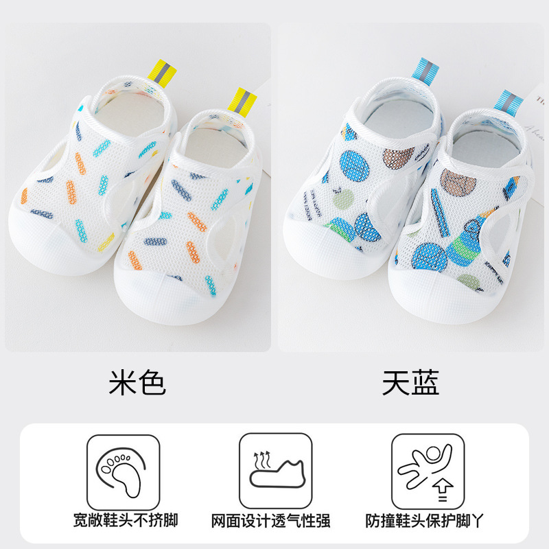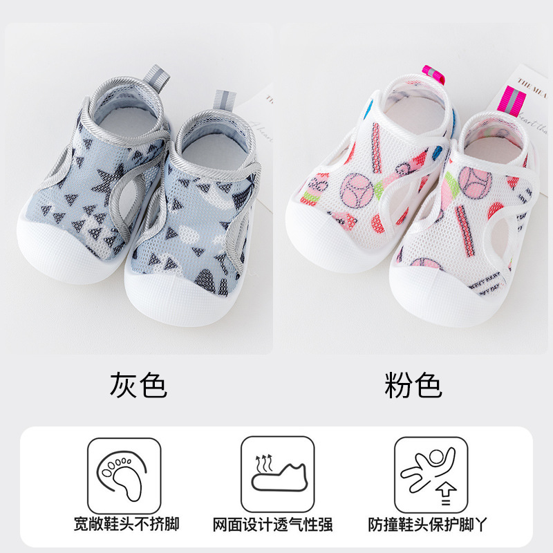 아기 유아 신발 봄과 여름 소년과 소녀 홈 캐주얼 미끄럼 방지 충격 흡수 통기성 부드러운 바닥 바닥 신발과 양말스토어 가기