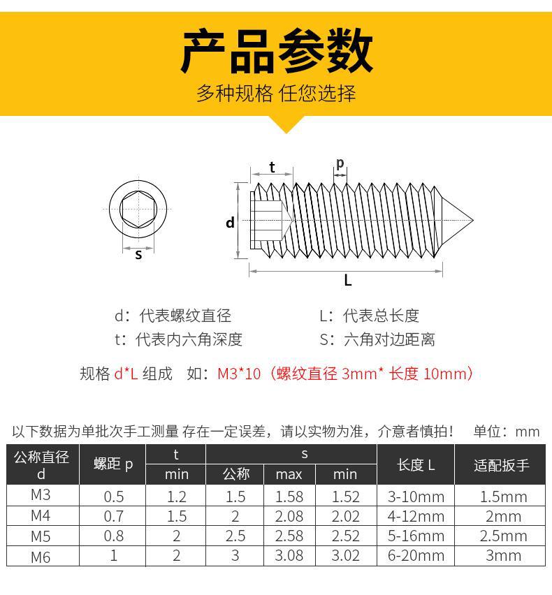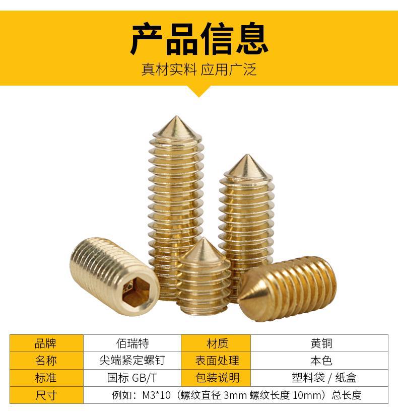 황동 육각 소켓 고정 나사 기계 미터 헤드리스 나사 팁 헤드 미터 스톱 토퍼 M3M4M5M6