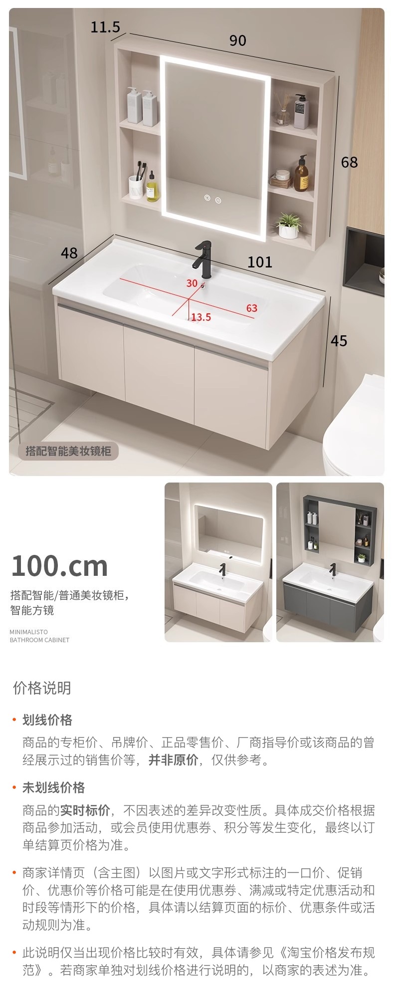 세면대 캐비닛 조합 세라믹 일체형 세면대 욕실 세면대 대형 배꼽 세면대 공중에 매달린 벌집 알루미늄 욕실 캐비닛스토어 가기