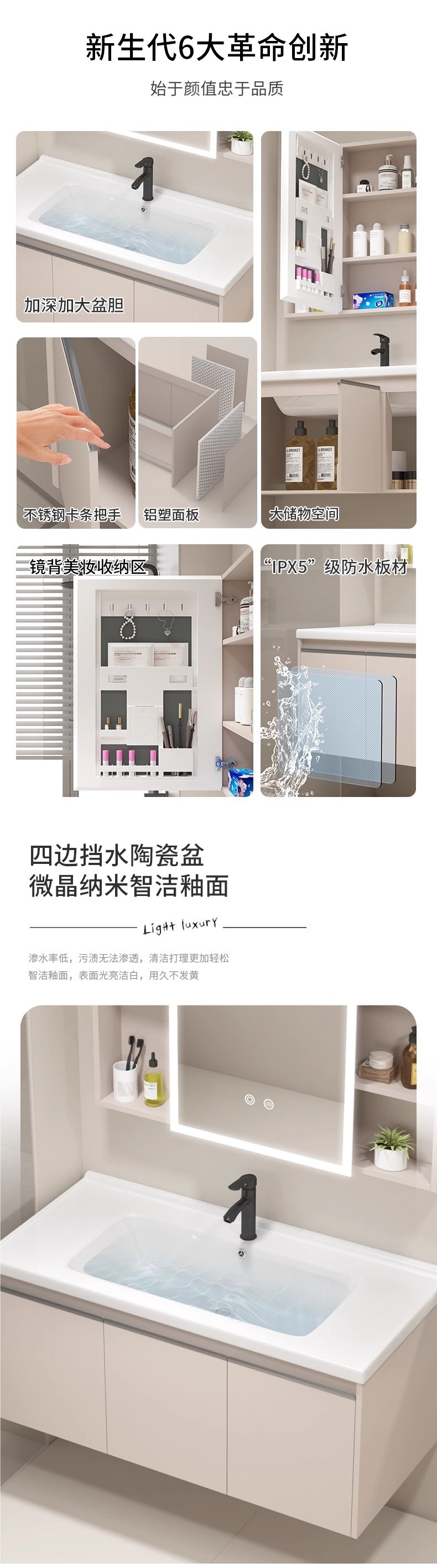 • 크림*알루미늄 허니컴 80 캐비닛 11170 세면대 + 블랙 냉온수 수도꼭지 + 70 스마트 사각 거울