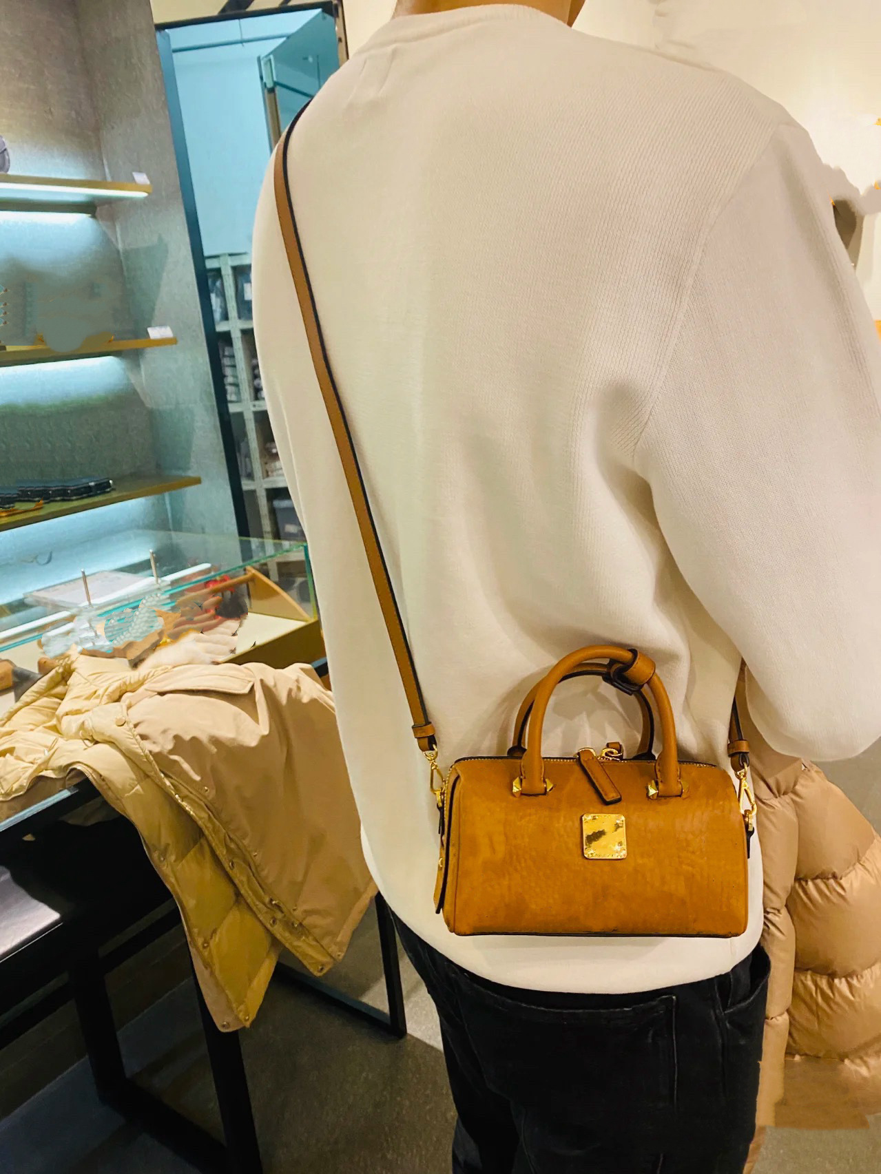 로고 M 베개 가방 C 보스턴 M 숄더 크로스 바디 핸드 헬드 실린더 백 여성용 정품 가죽 가방스토어 가기
