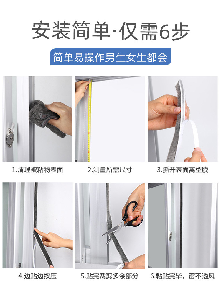 겨울 창문 방풍 및 창문 방풍 및 보온 실란트 스트립 슬라이딩 창문 간격 방음 자체 접착 헤어 스트립