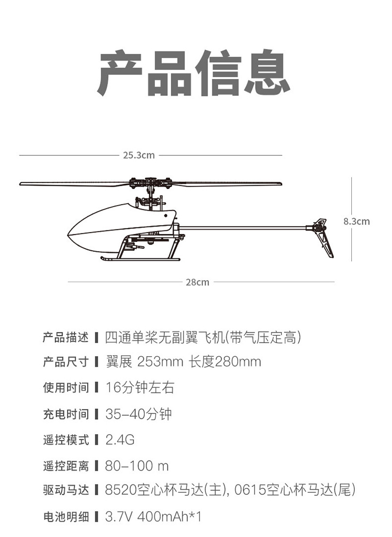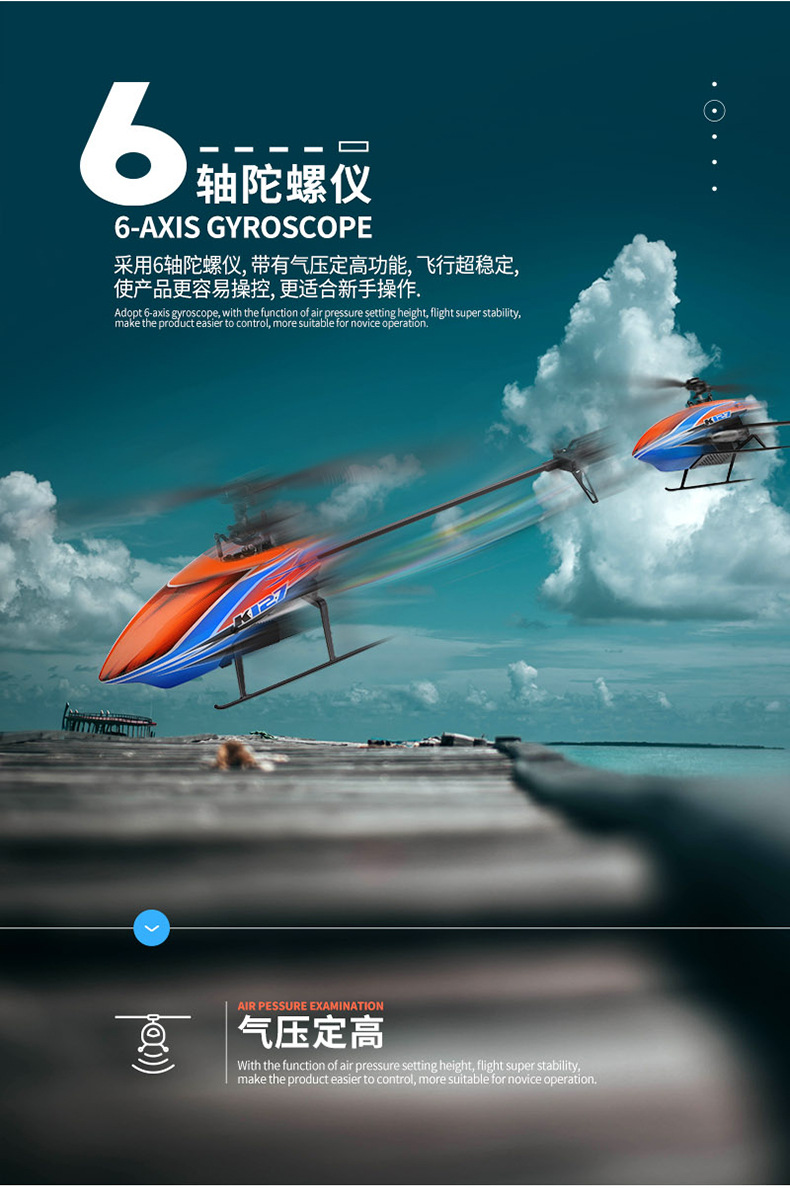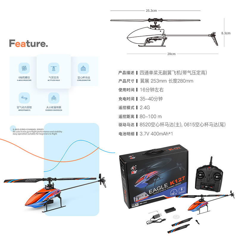 • Weili K127 4방향 단일 프로펠러 Flybarless 항공기(기압 고도 고정 포함)
