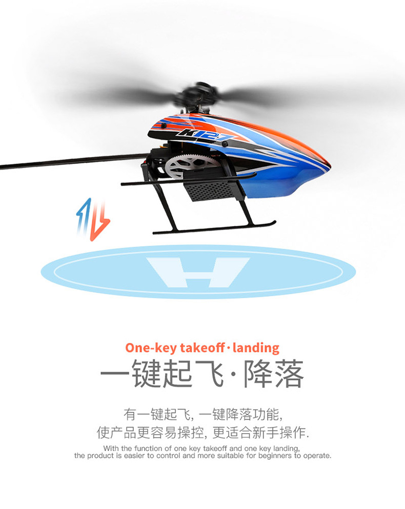 Weili K127 원격 제어 헬리콥터 4방향 단일 패들 플라이바리스 항공기 6축 자이로스코프 항공 모델 장난감