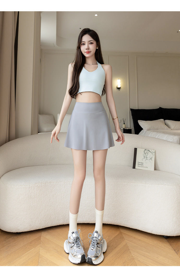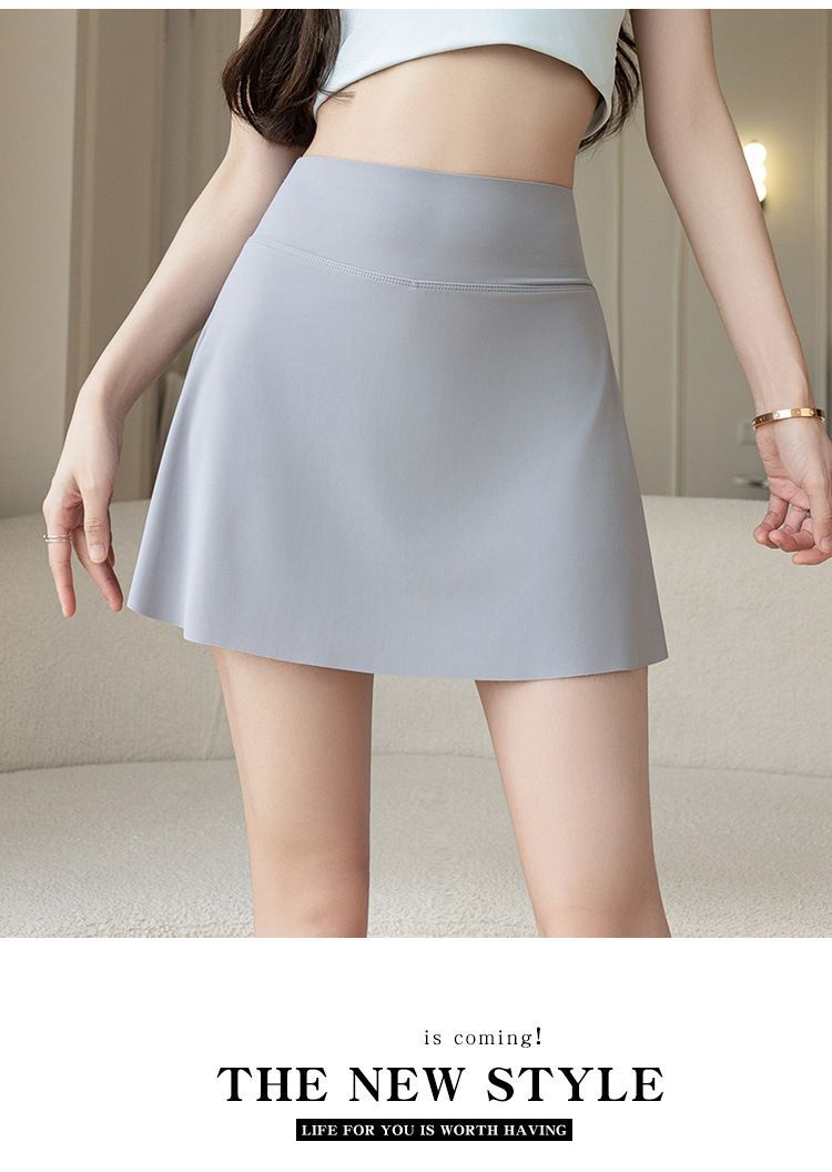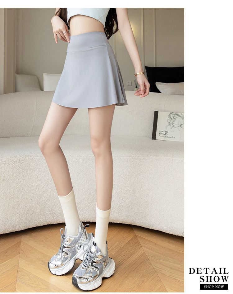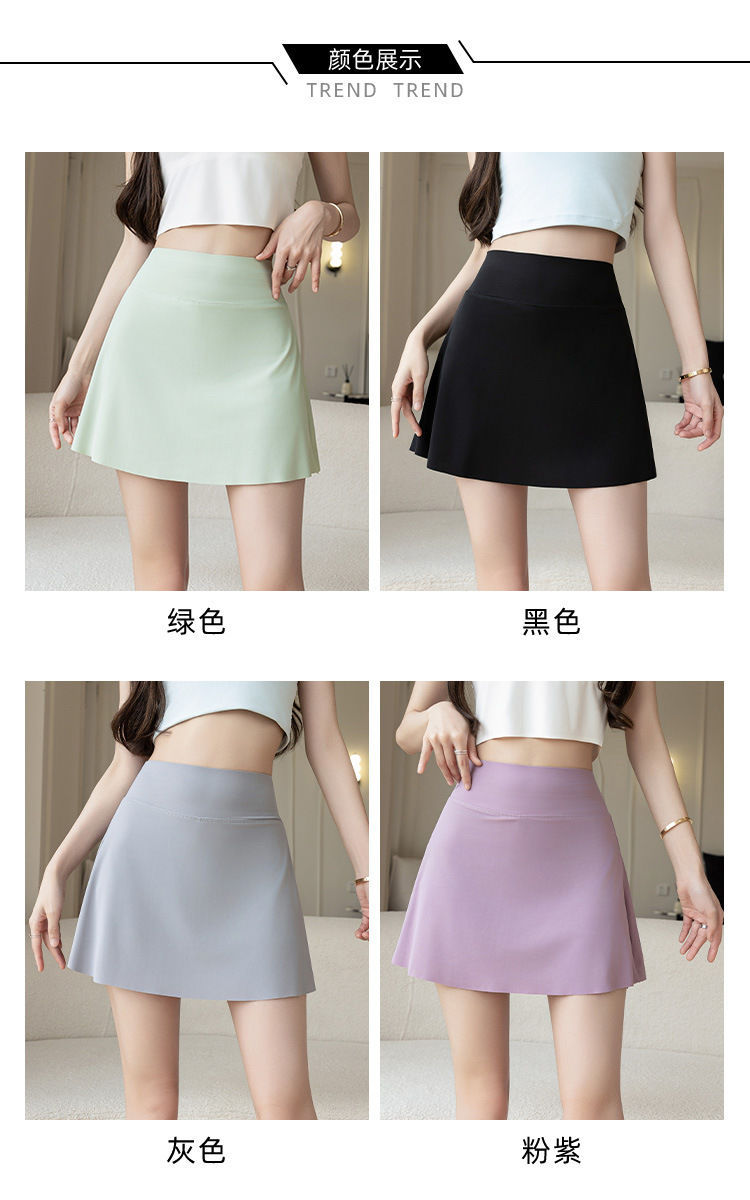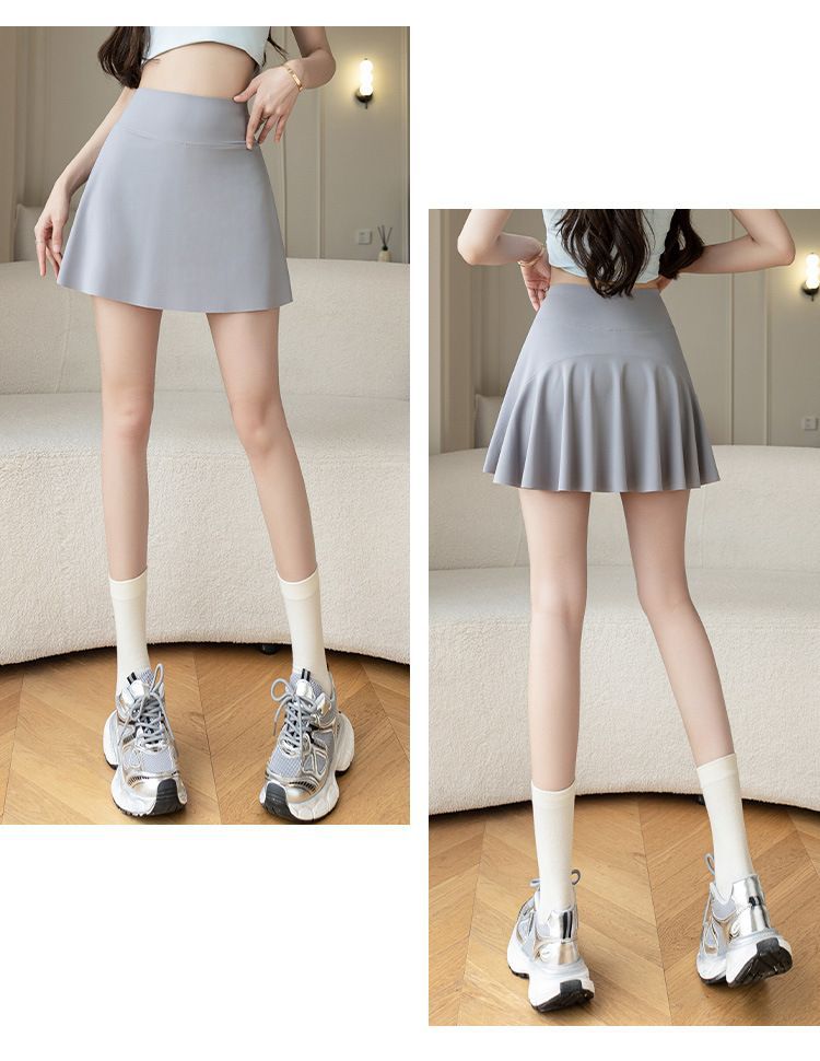 여성용 여름 아이스 실크 가랑이 플리츠 스커트, 하이웨이스트, 네이키드 착용 가능, 요가 스포츠 스커트, 대형 노출 방지 스커트스토어 가기