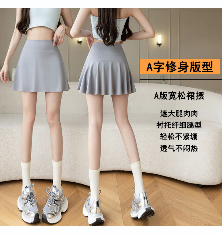 여성용 여름 아이스 실크 가랑이 플리츠 스커트, 하이웨이스트, 네이키드 착용 가능, 요가 스포츠 스커트, 대형 노출 방지 스커트