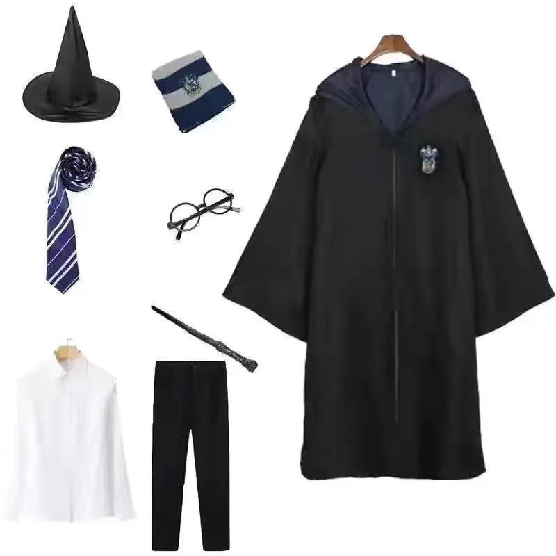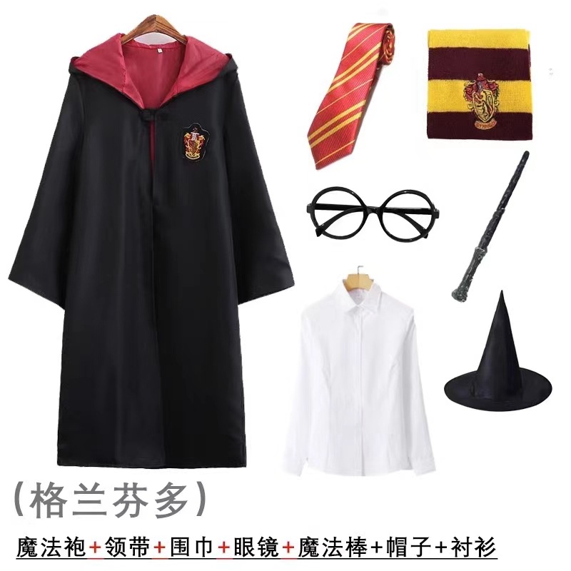 해리 포터 마술 가운 cos 의상 코스프레 할로윈 망토 남성과 여성 어린이 대학 스타일 옷 전체 세트
