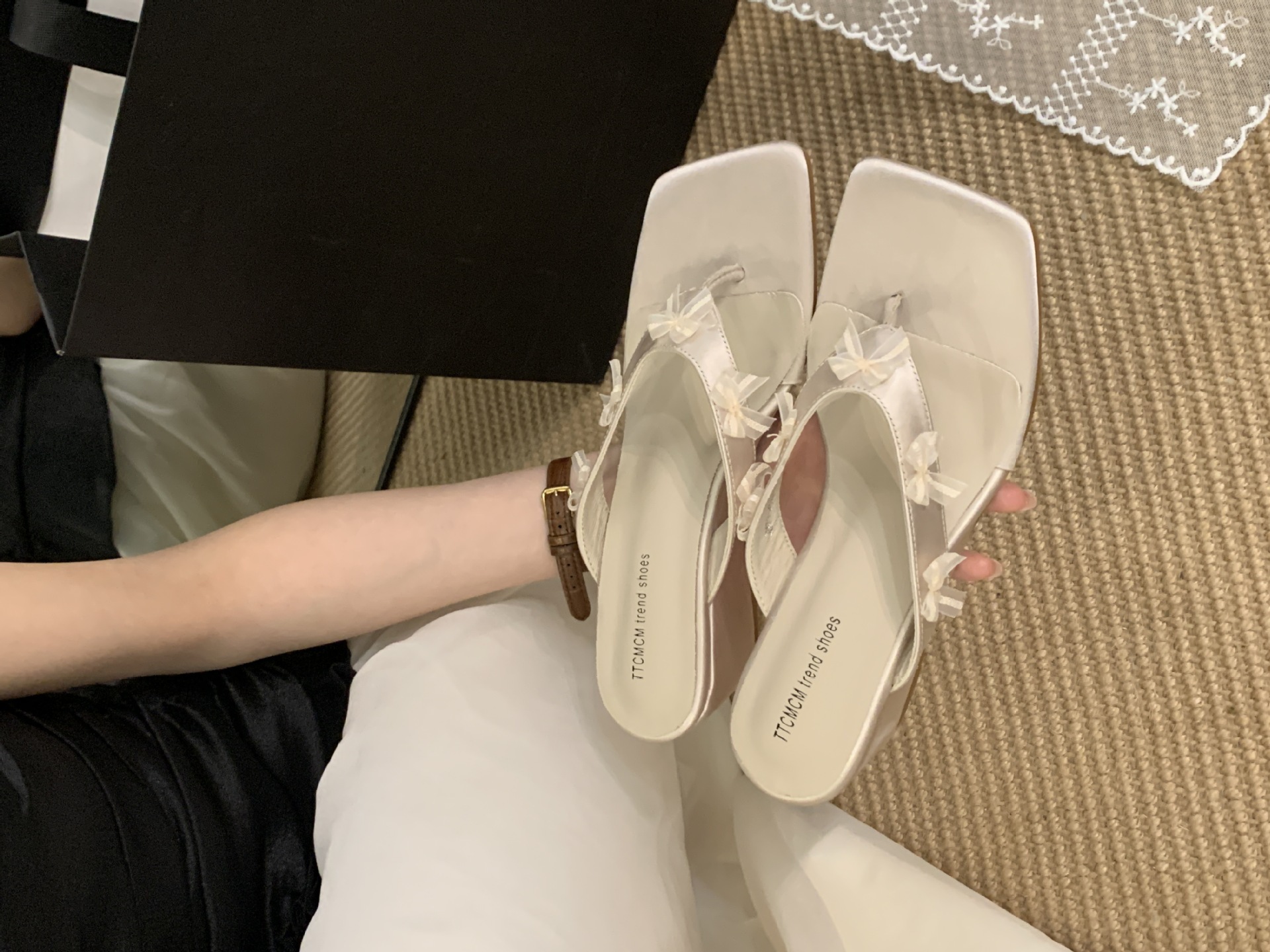 여성을위한 프랑스 스타일 외부 샌들 2025 여름 새로운 저녁 바람 비치 헤링본 플립 플롭 웨지 슬리퍼