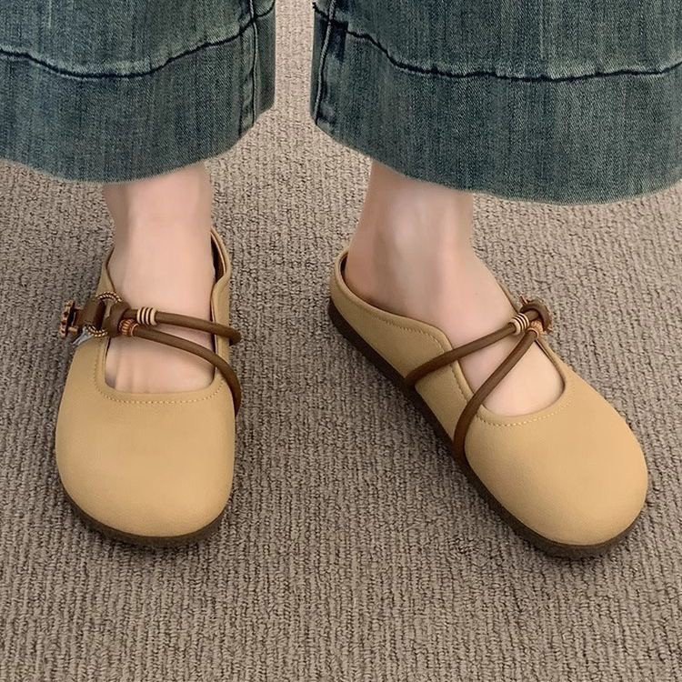 여성용 바오터우 하프 슬리퍼 여름 아우터 2025 새로운 슈퍼 핫 플랫 슬립 온 게으른 하프 슬리퍼 프렌치 샌들스토어 가기