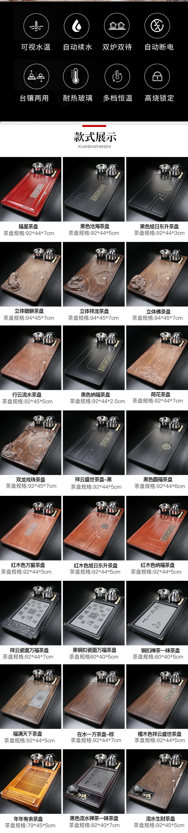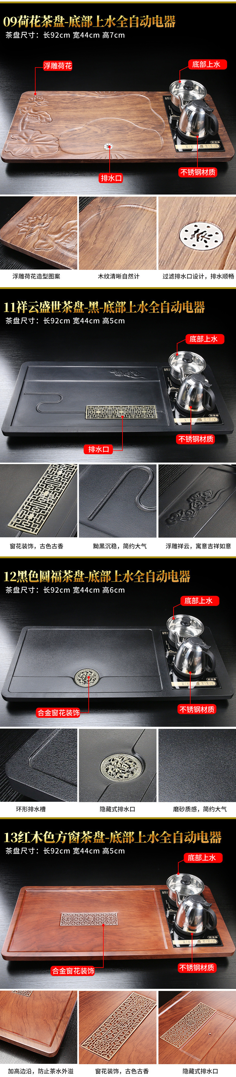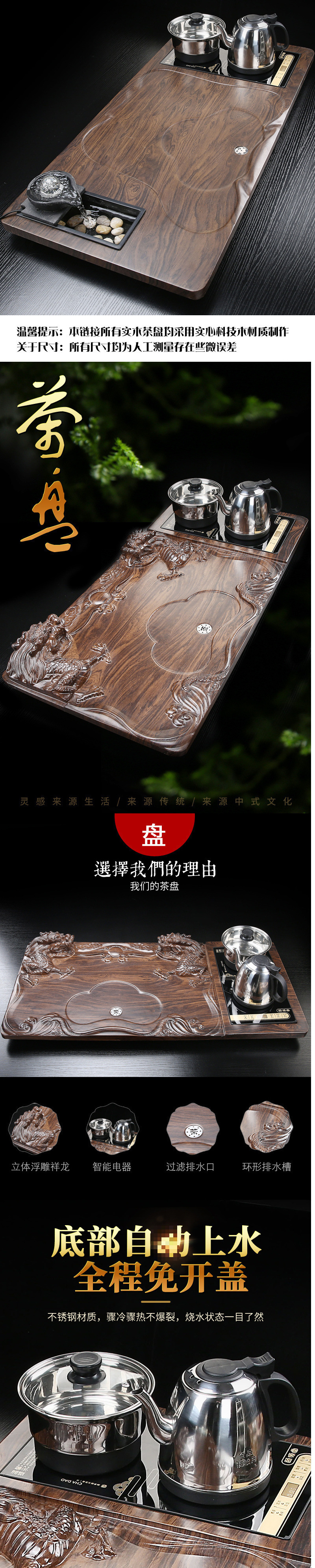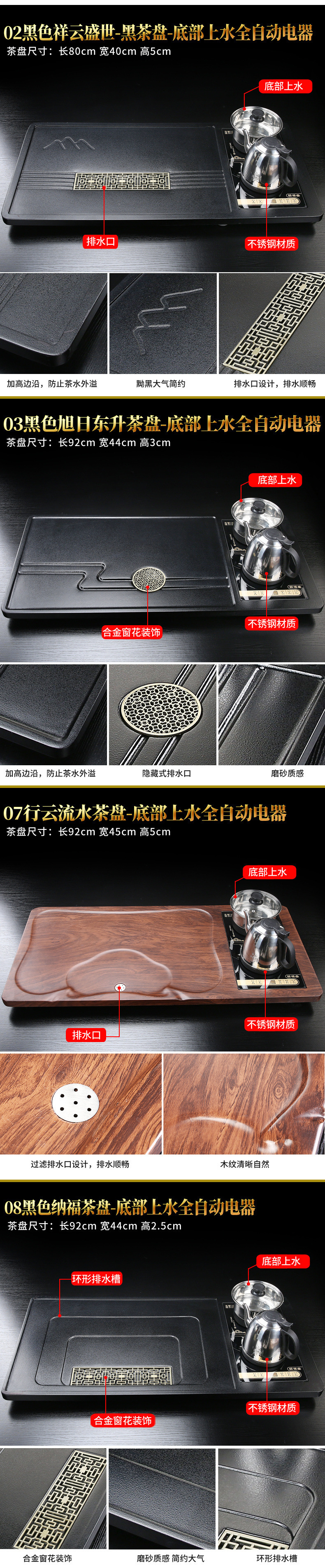 • 블랙 자동(하단에 물) Xiangyun Shengshi 차 트레이 - 블랙