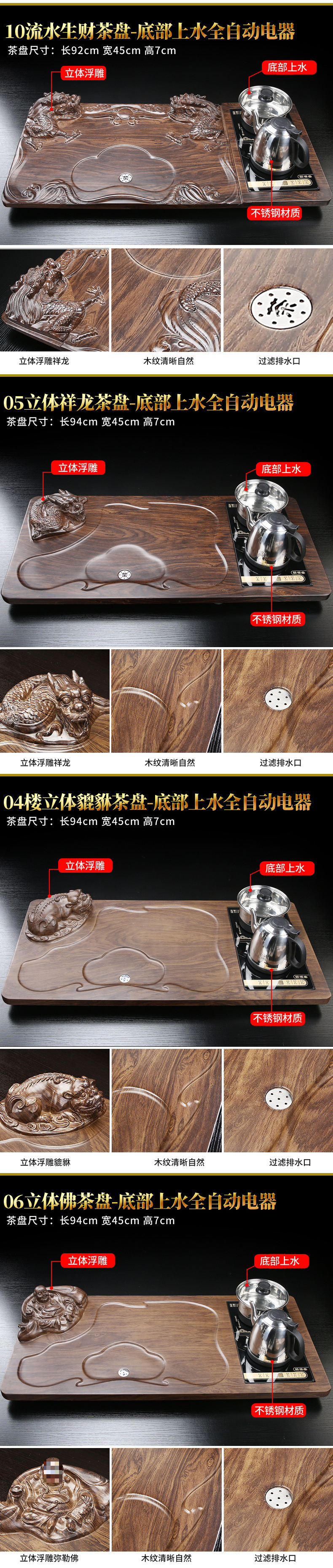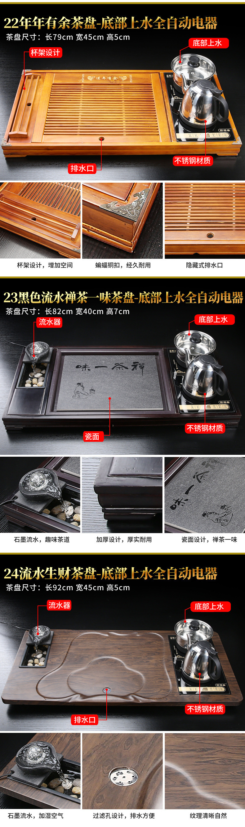 자동 차 트레이 원목 가정용 차 테이블 주전자 일체형 사무실 대형 차 세트 배수 트레이 차 도구