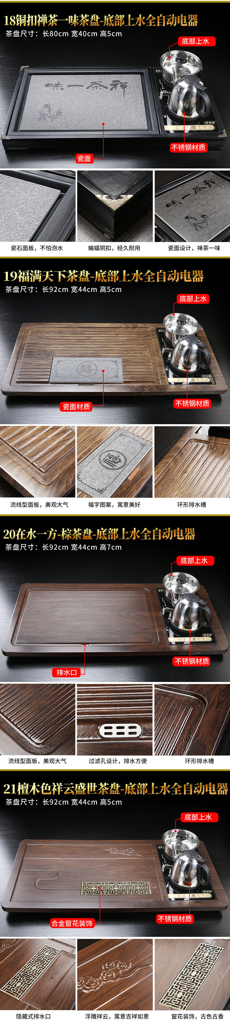 • 블랙 자동(하단에 물) Xiangyun Shengshi 차 트레이-브라운