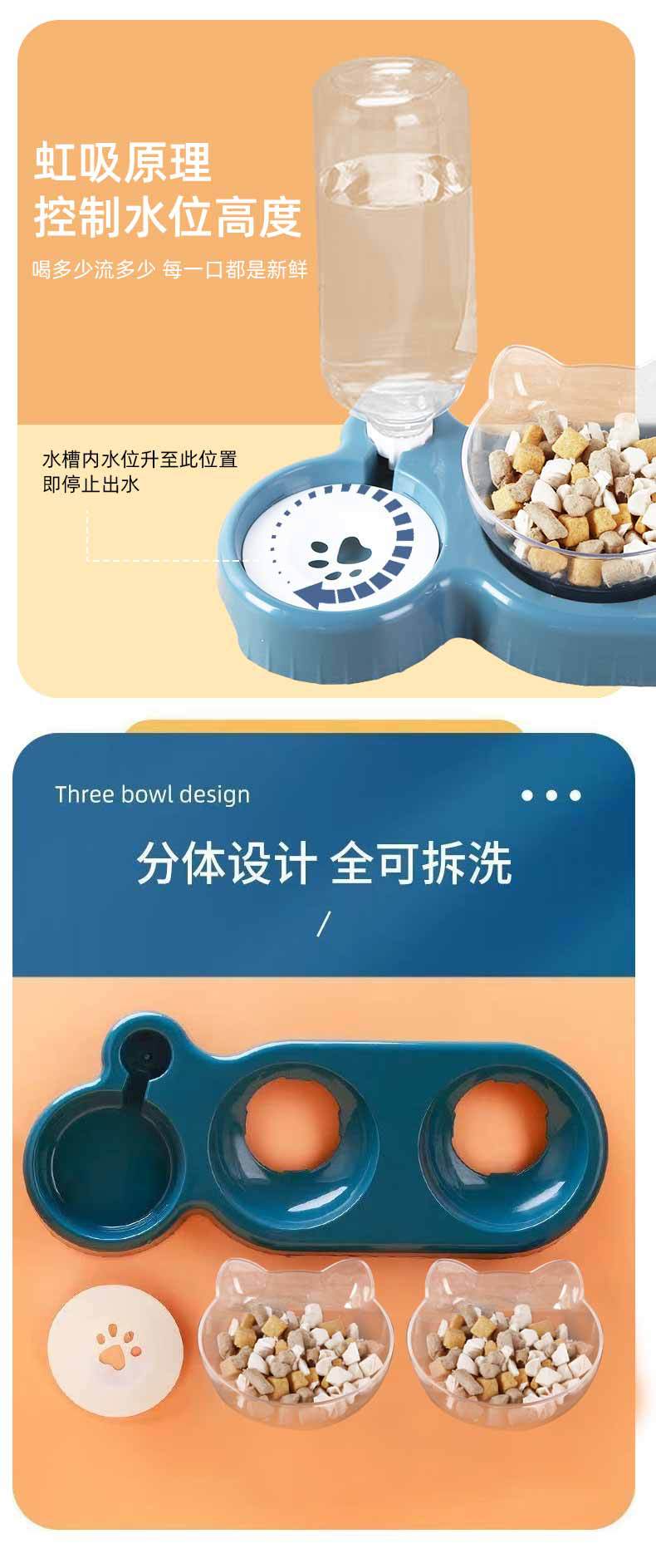 고양이 그릇, 이중 그릇, 강아지 그릇, 자동 물통, 투인원 자동 물 저장 및 흘러내림 방지 식기, 애완동물 용품 급식기스토어 가기