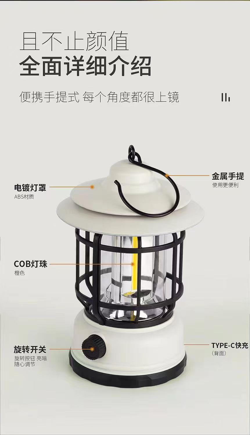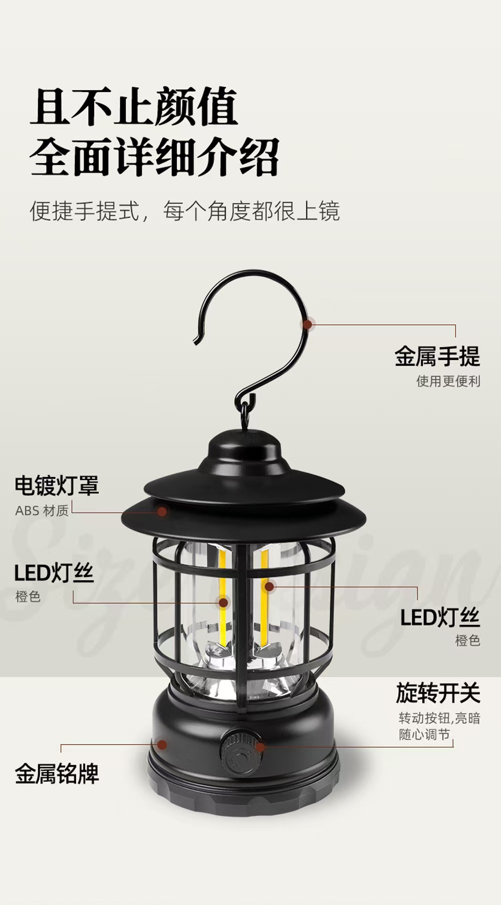 다기능 복고풍 캠핑 조명, 매우 긴 배터리 수명, 실외 조명, 캠프 조명, 텐트 캐노피 분위기 조명, 캠프 교수형 조명