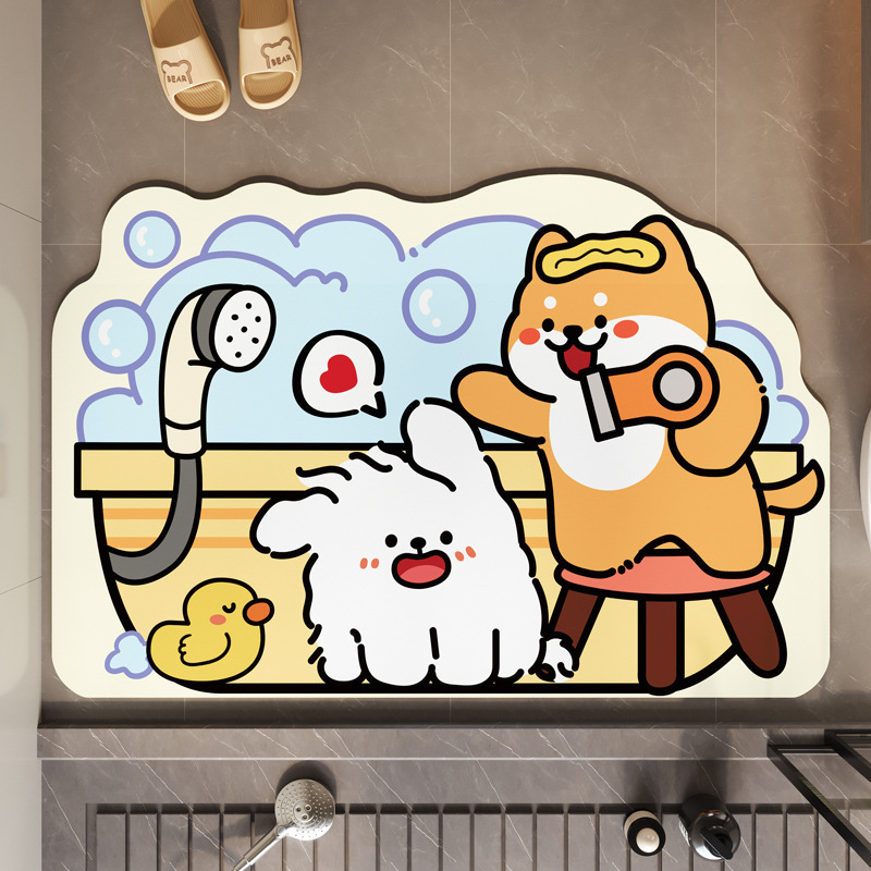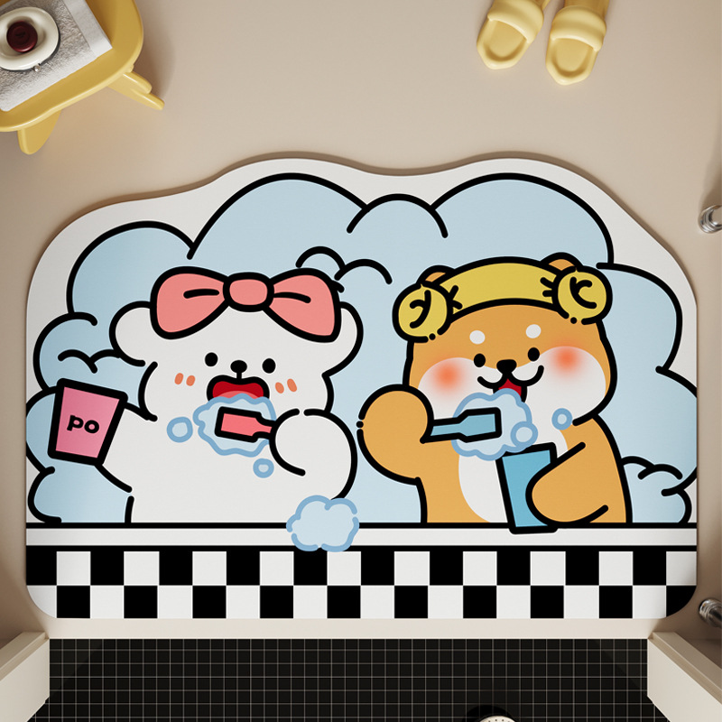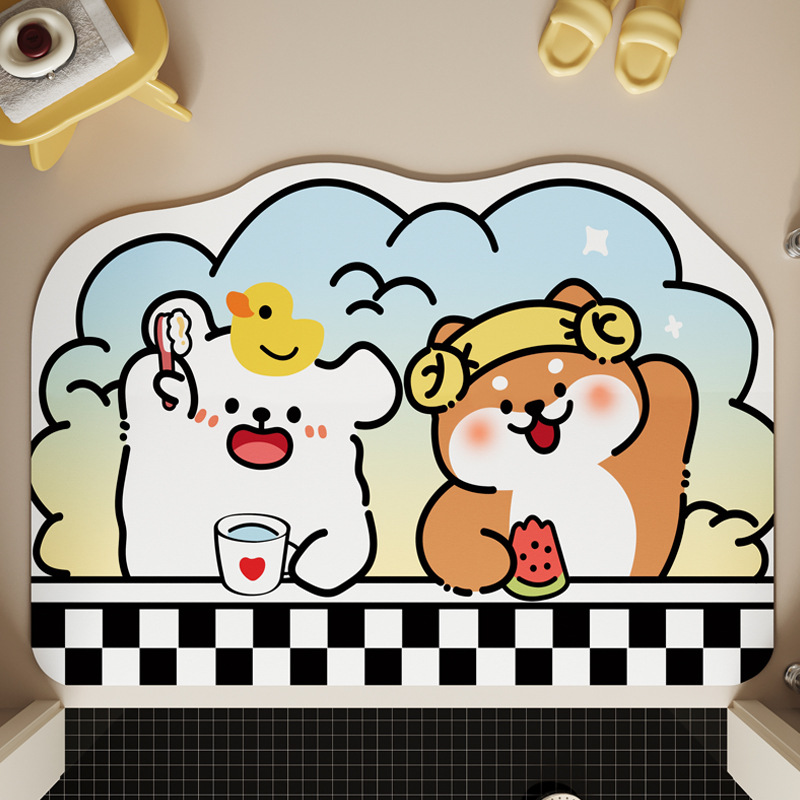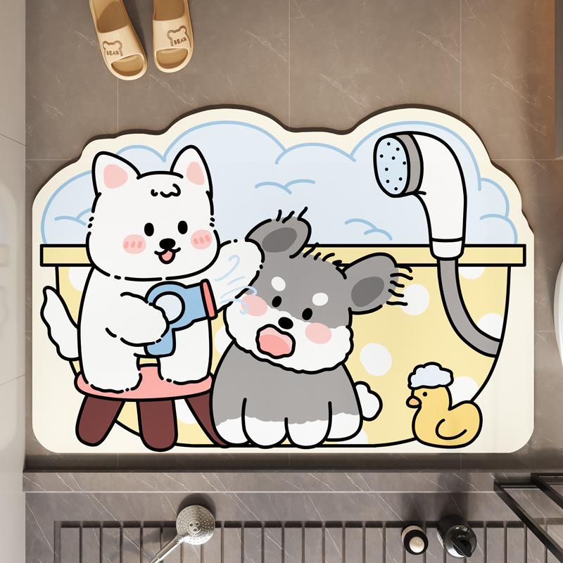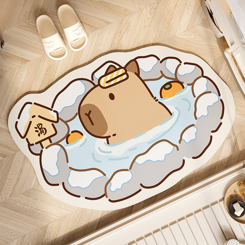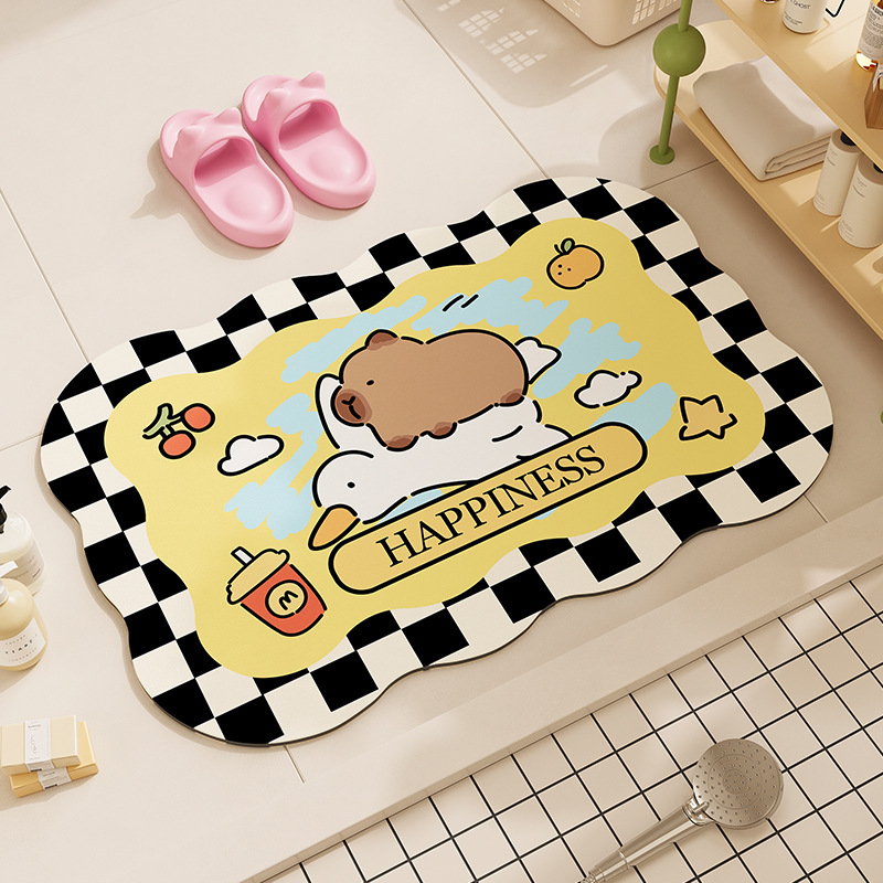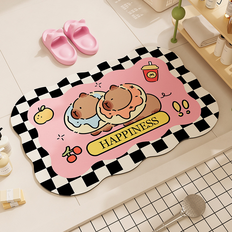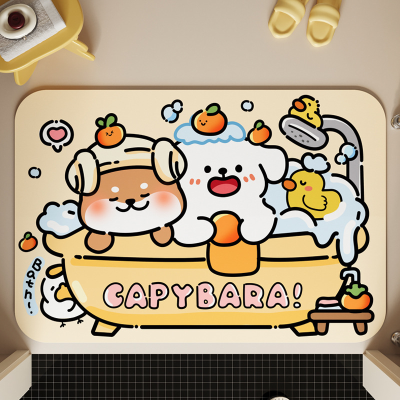 귀여운 라인 강아지 욕실 바닥 매트 Kapibala 욕실 흡수성 도어 매트 샤워실 낙하 방지 매트 재고 있음