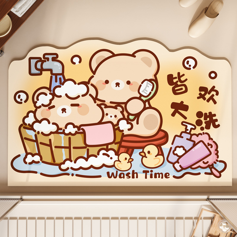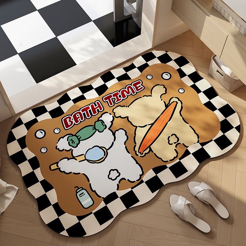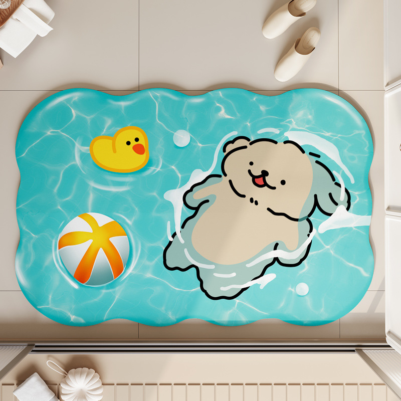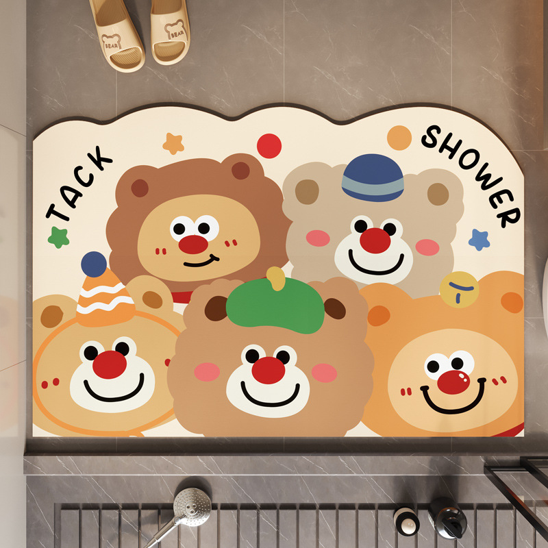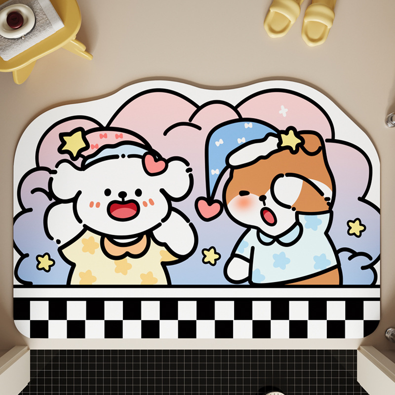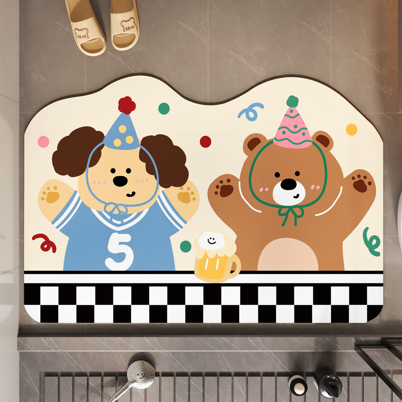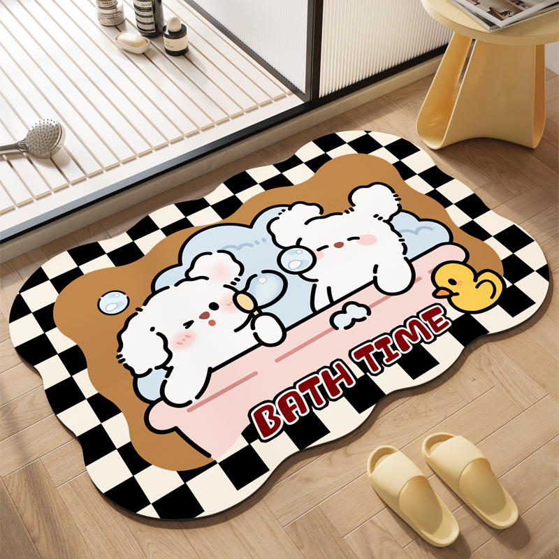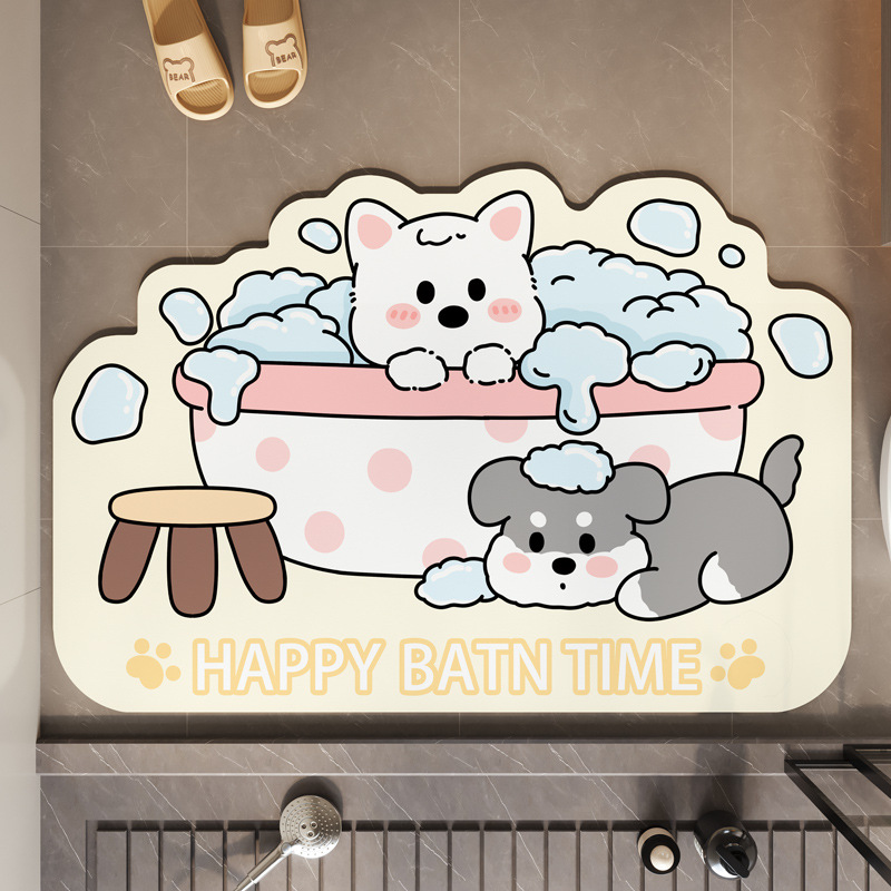 귀여운 라인 강아지 욕실 바닥 매트 Kapibala 욕실 흡수성 도어 매트 샤워실 낙하 방지 매트 재고 있음