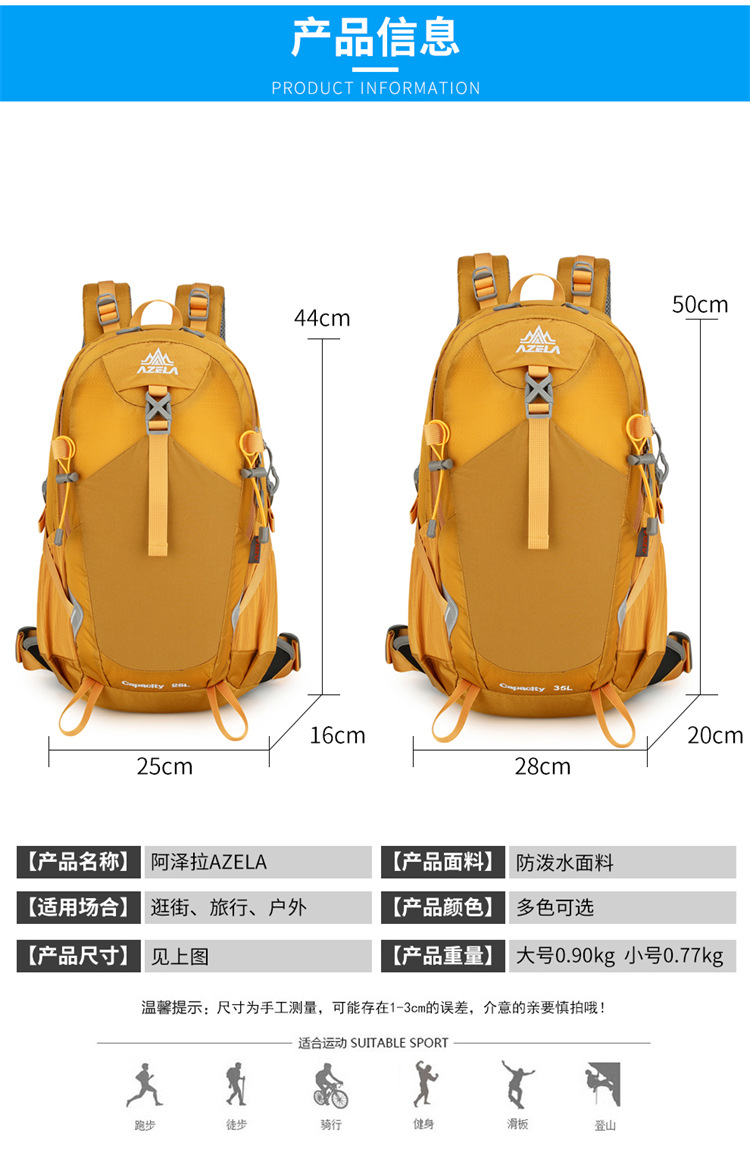 Azera 경량 캐주얼 야외 배낭 등산 하이킹 가방 크로스 컨트리 사이클링 배낭 방수 및 긁힘 방지스토어 가기