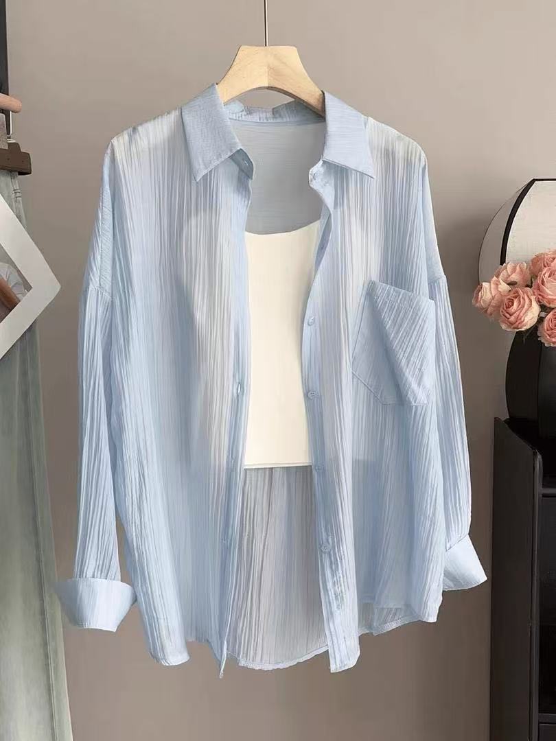 2025 새로운 여름 스타일 텐셀 주름 다목적 패션 자외선 차단 의류 여성 셔츠 느슨한 슬리밍 대형 에어컨 겉옷
