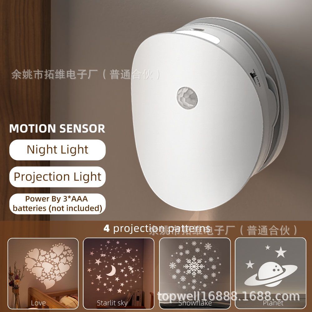 创意新品爱心雪花太空星空投影壁灯楼道红外无线人体感应投影夜灯