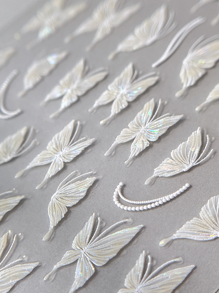 YITU 엘리베이티드 쉘 라이트 화이트 나비 네일 아트 스티커 절묘한 순수한 욕망 스타일 프랑스어 장식 스티커 YT5607