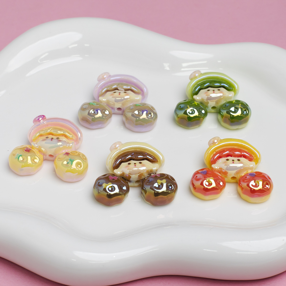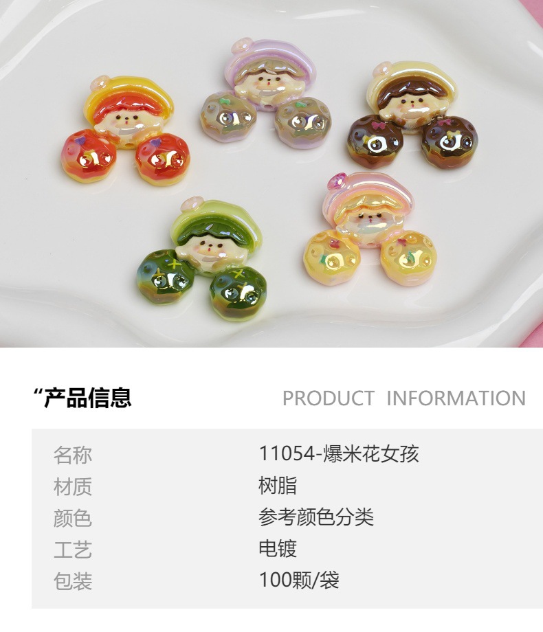 Mapei 전기 도금 스루 홀 수지 액세서리 만화 팝콘 소녀 스트레이트 홀 루즈 비즈 diy 휴대 전화 체인 쥬얼리 액세서리