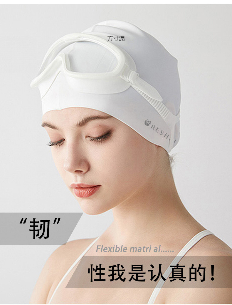 • 흰색 수영모 - 특대형 + 수영 고글(4개 세트)
