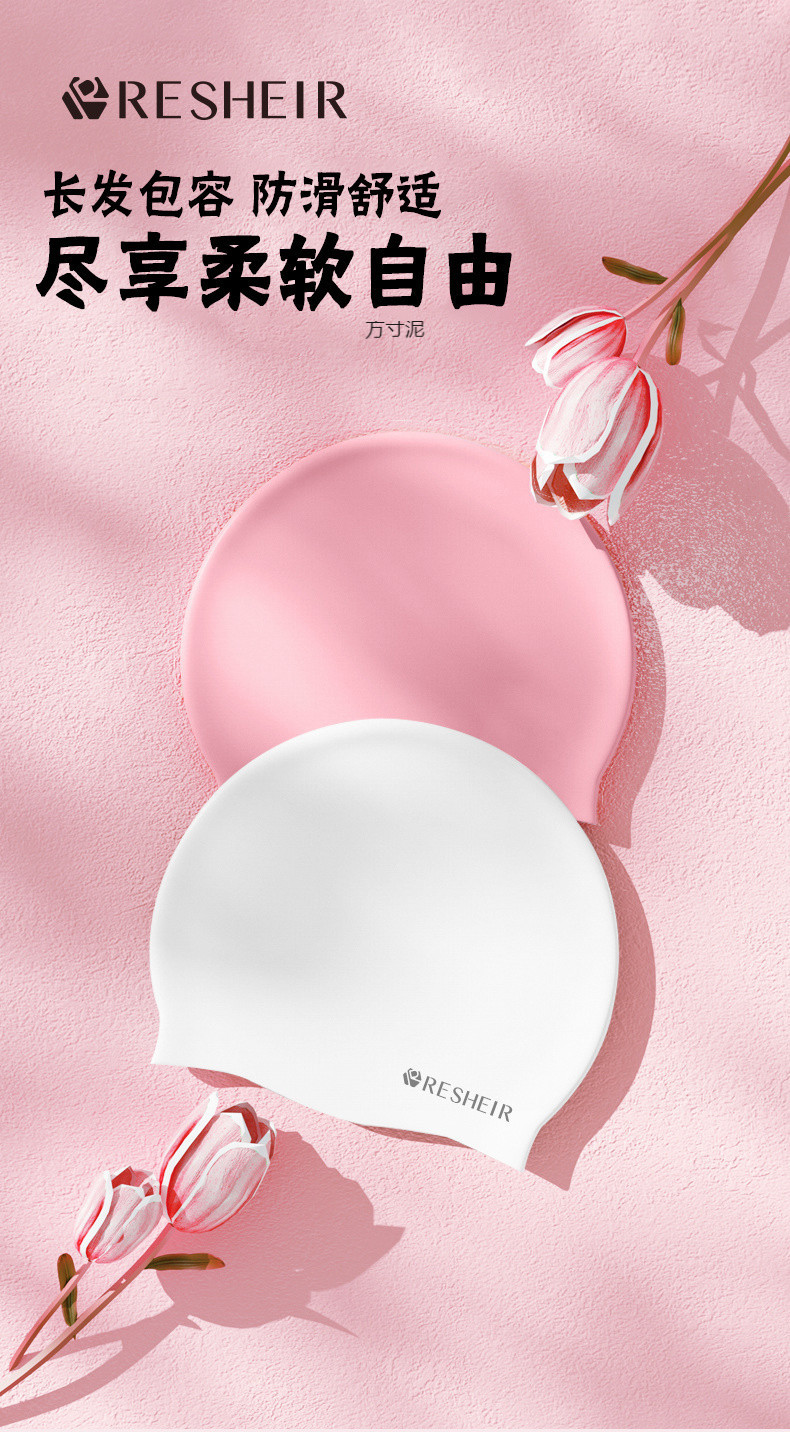 긴 머리를 가진 여성을 위한 실리콘 수영 모자, 귀 보호, 성인 남성을 위한 귀엽고 패셔너블한 프린트 수영 모자, 플러스 사이즈, 머리를 조이지 않는 공급망