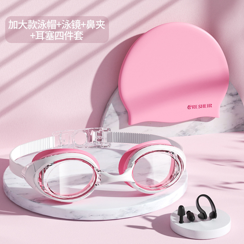 • 핑크 수영모 - 특대형 + 수영 고글(4개 세트)