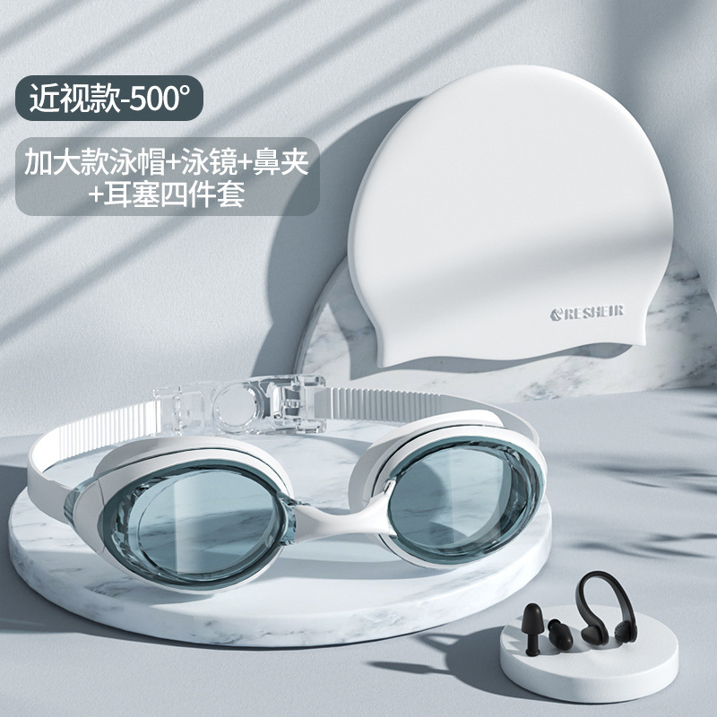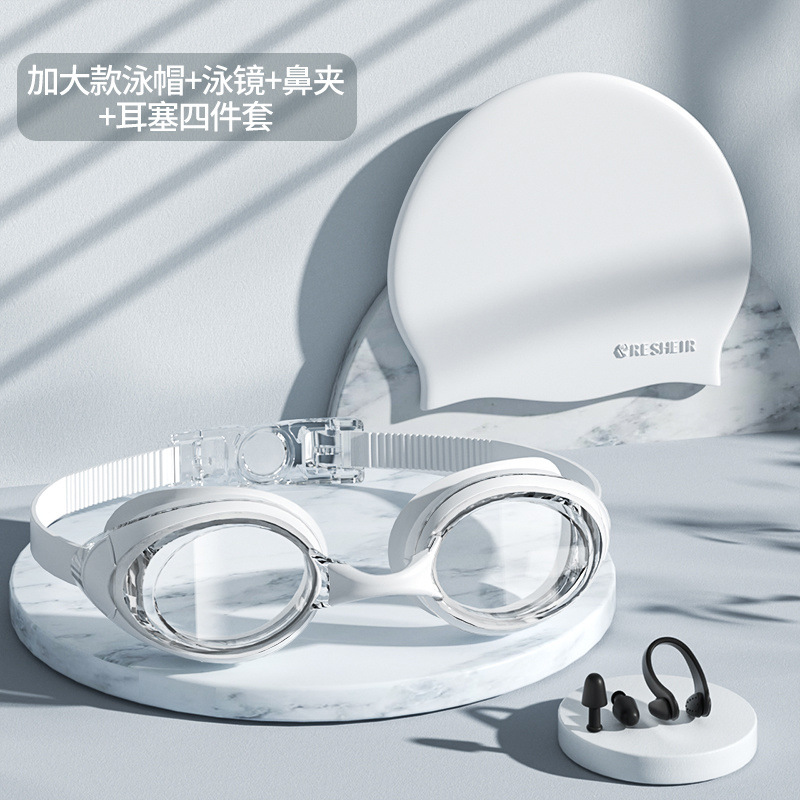 • 화이트 - 특대형 모델 + 수영 고글 600도 - 4종 세트
