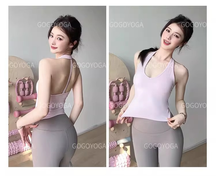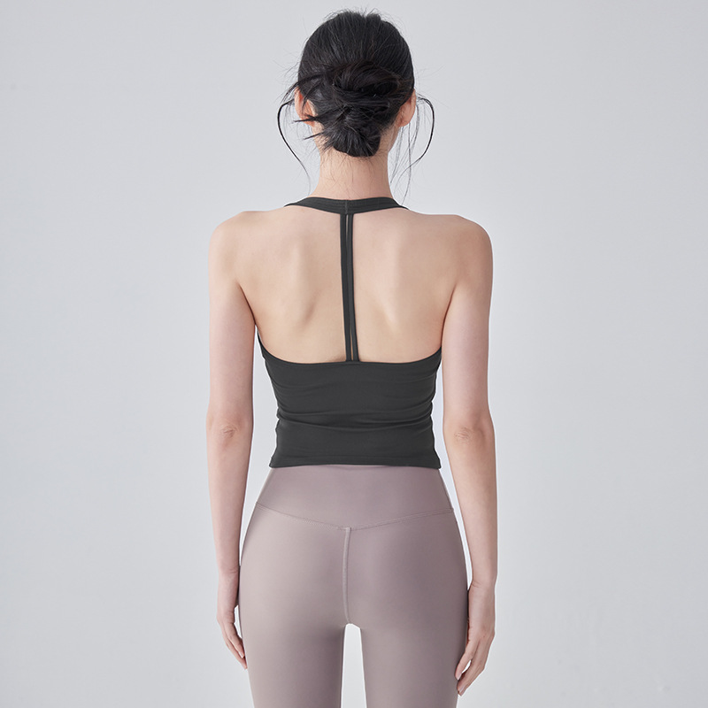 가슴 패드가있는 탈착식 스포츠 브라 여성용 충격 방지 홀터넥 피트니스 속옷 필라테스 트레이닝 러닝 요가 조끼