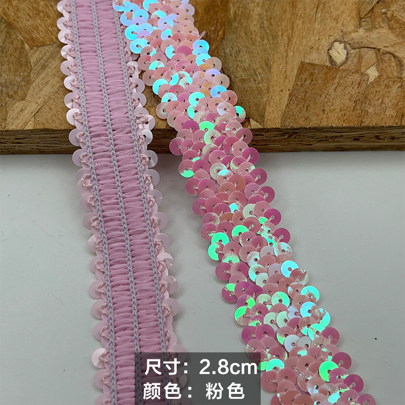 재고 있음 도매 2.8cm 무대 의상 반사 컬러 장식 스팽글 벨트 탄성 스팽글 웨빙 레이스스토어 가기