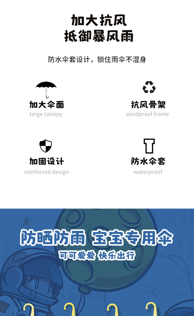 • [우주비행사 하오하오] [이중 두꺼운 우산](롤러 + 두꺼운 중간 막대 + 1년 보증)