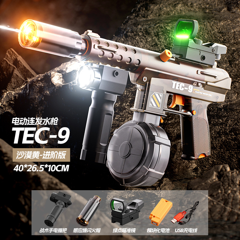 국경 간 유도 플래시 전기 연속 TEC9 물총 어린이 장난감 연결 대용량 물 스프레이 건스토어 가기